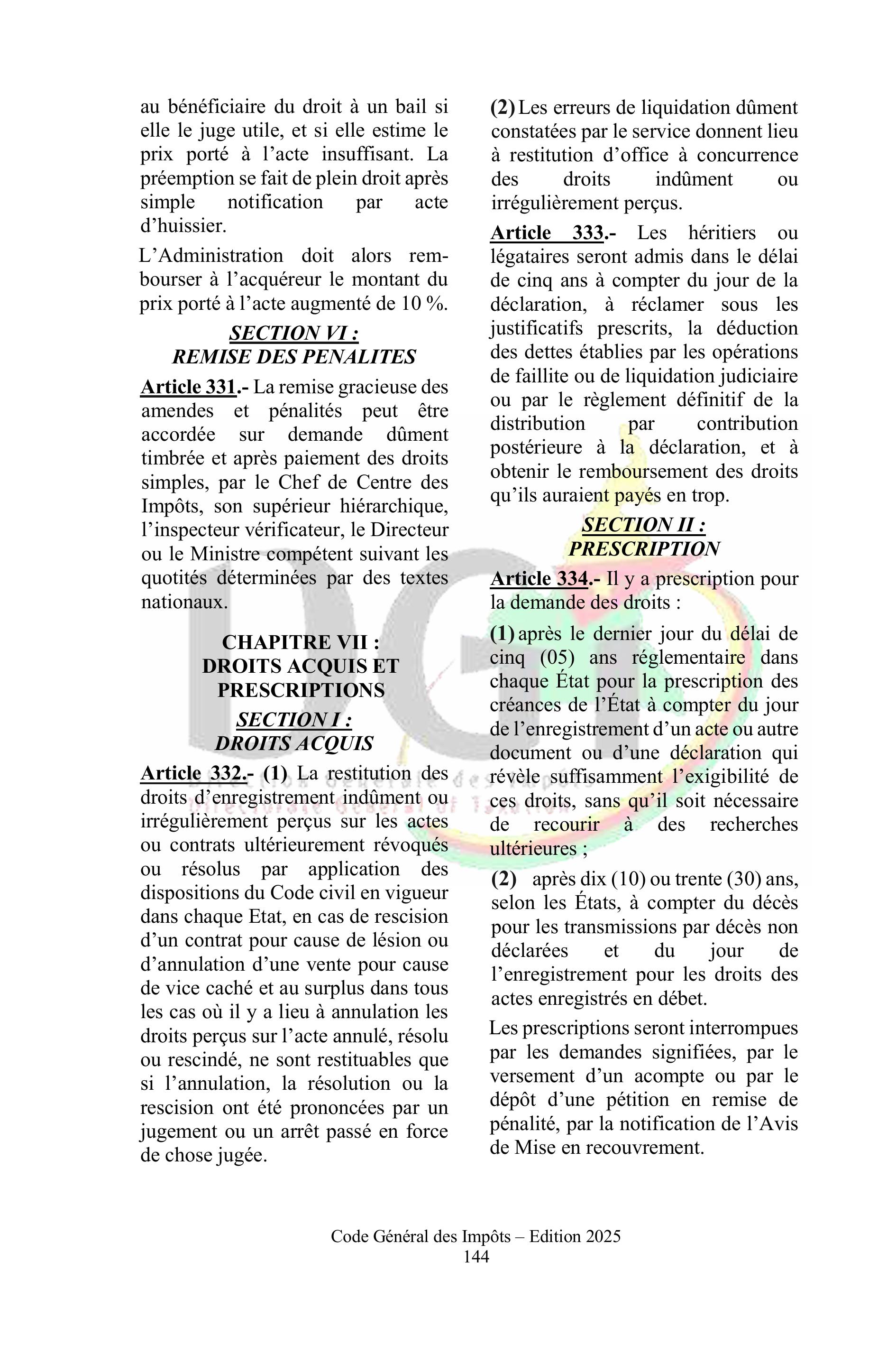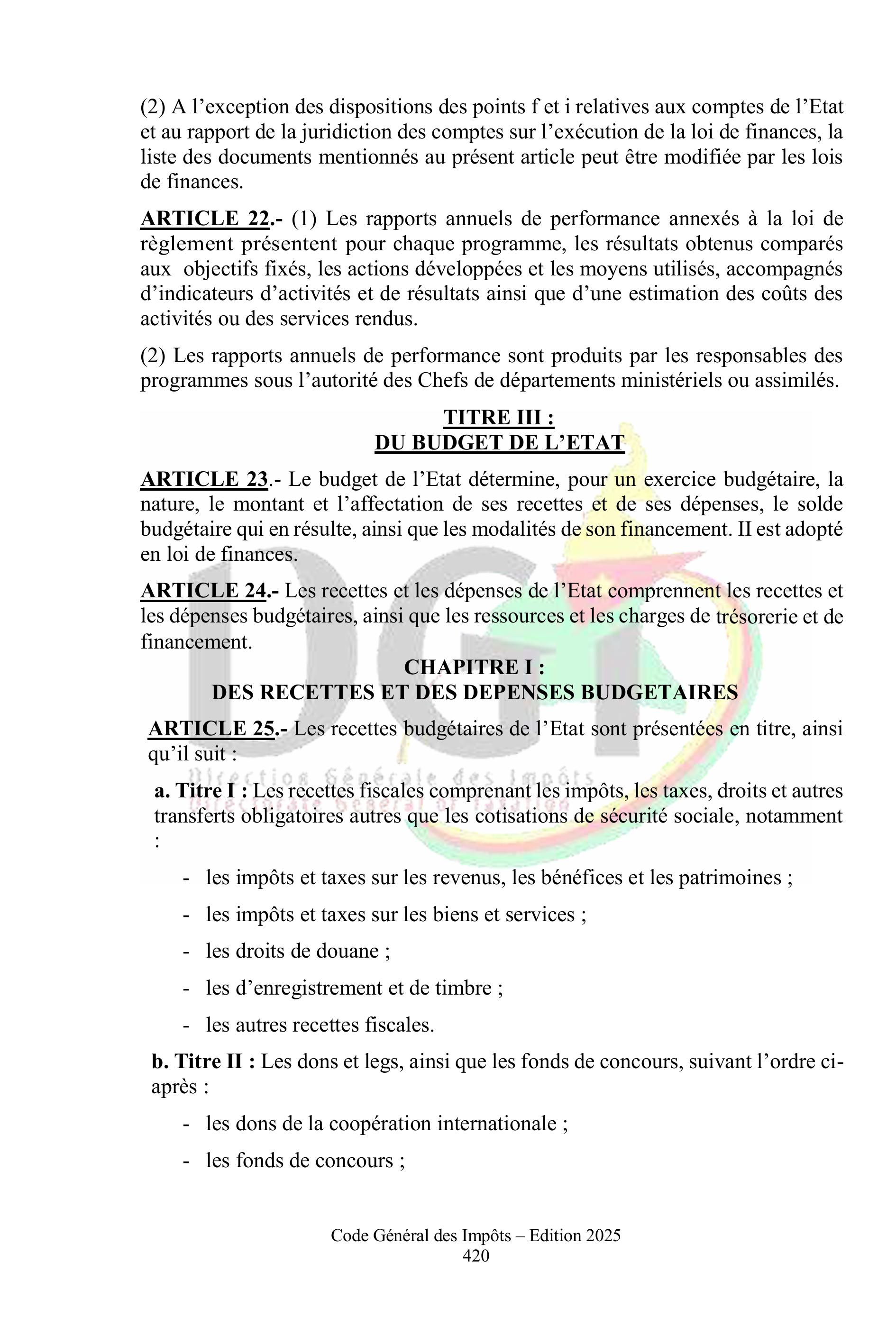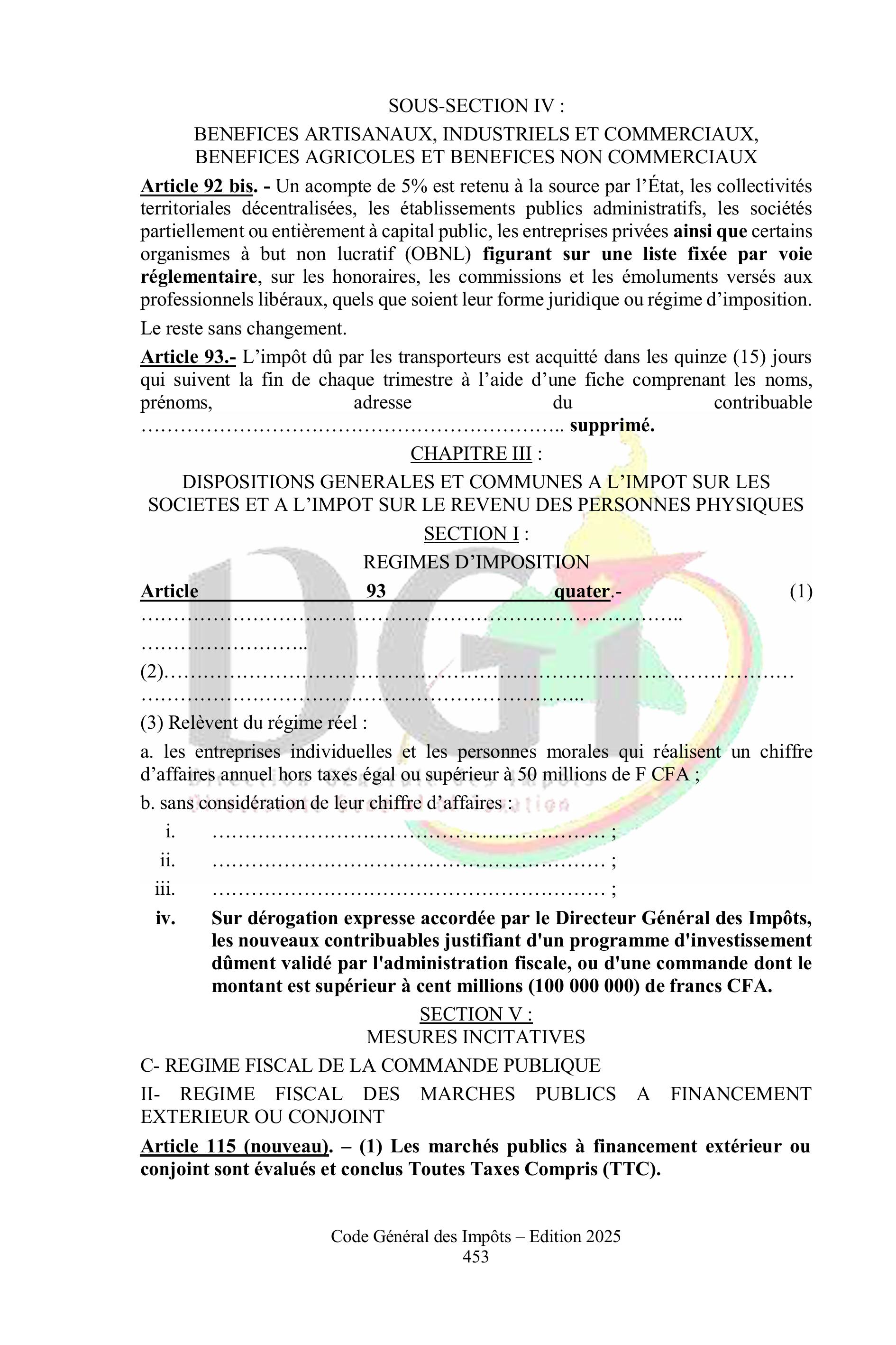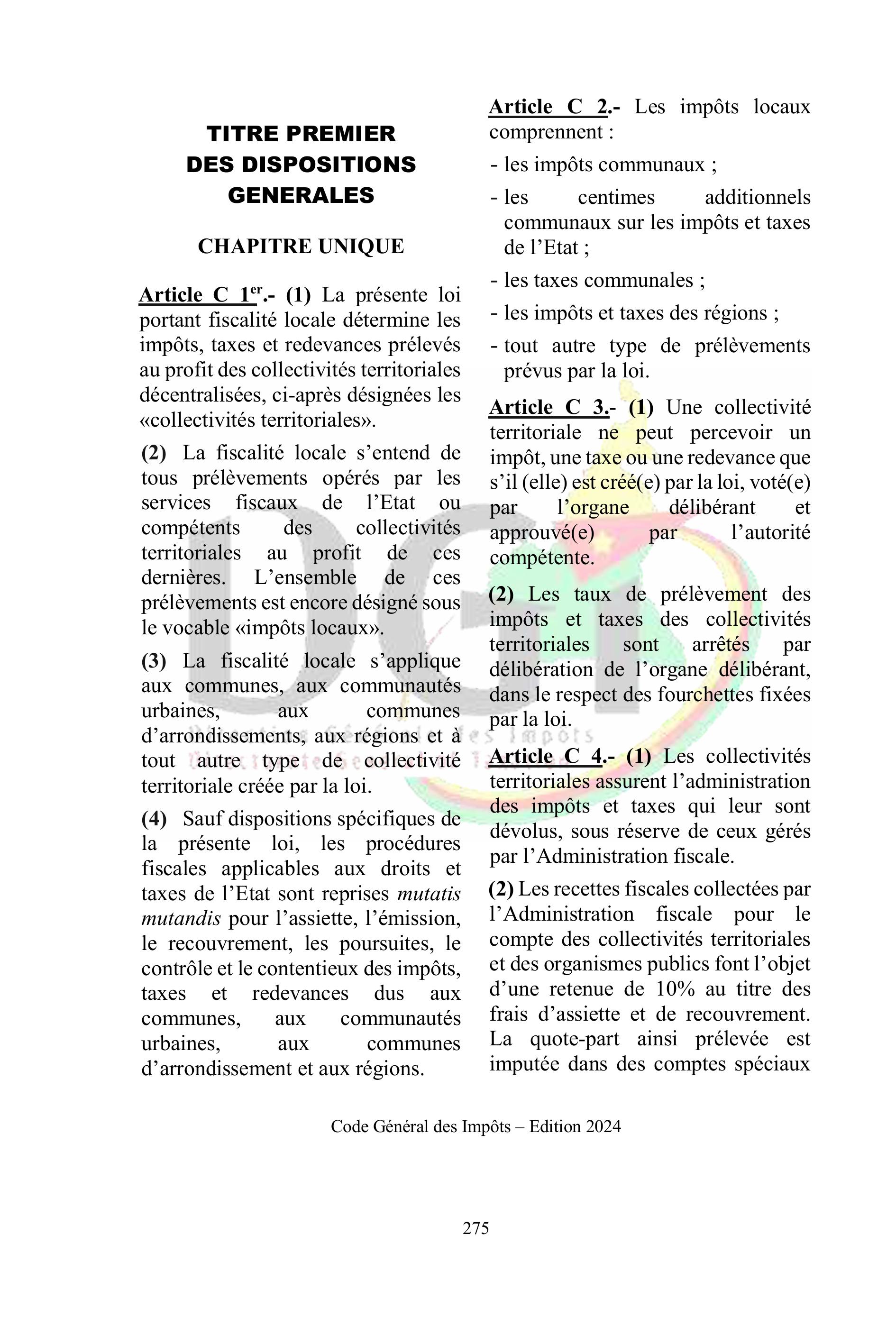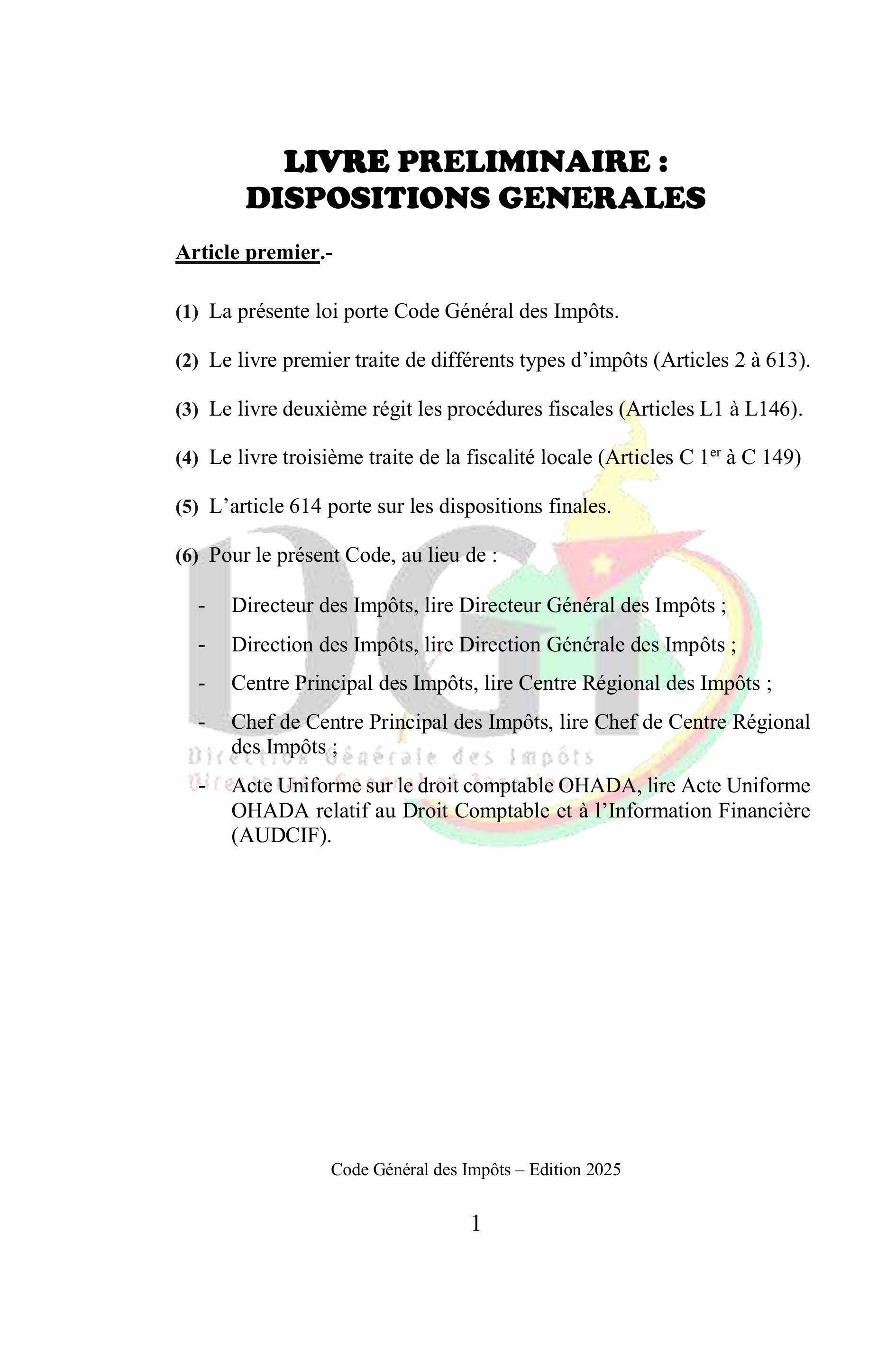 CODE GENERAL DES IMPOTS Mis à jour au 1er janvier 2025