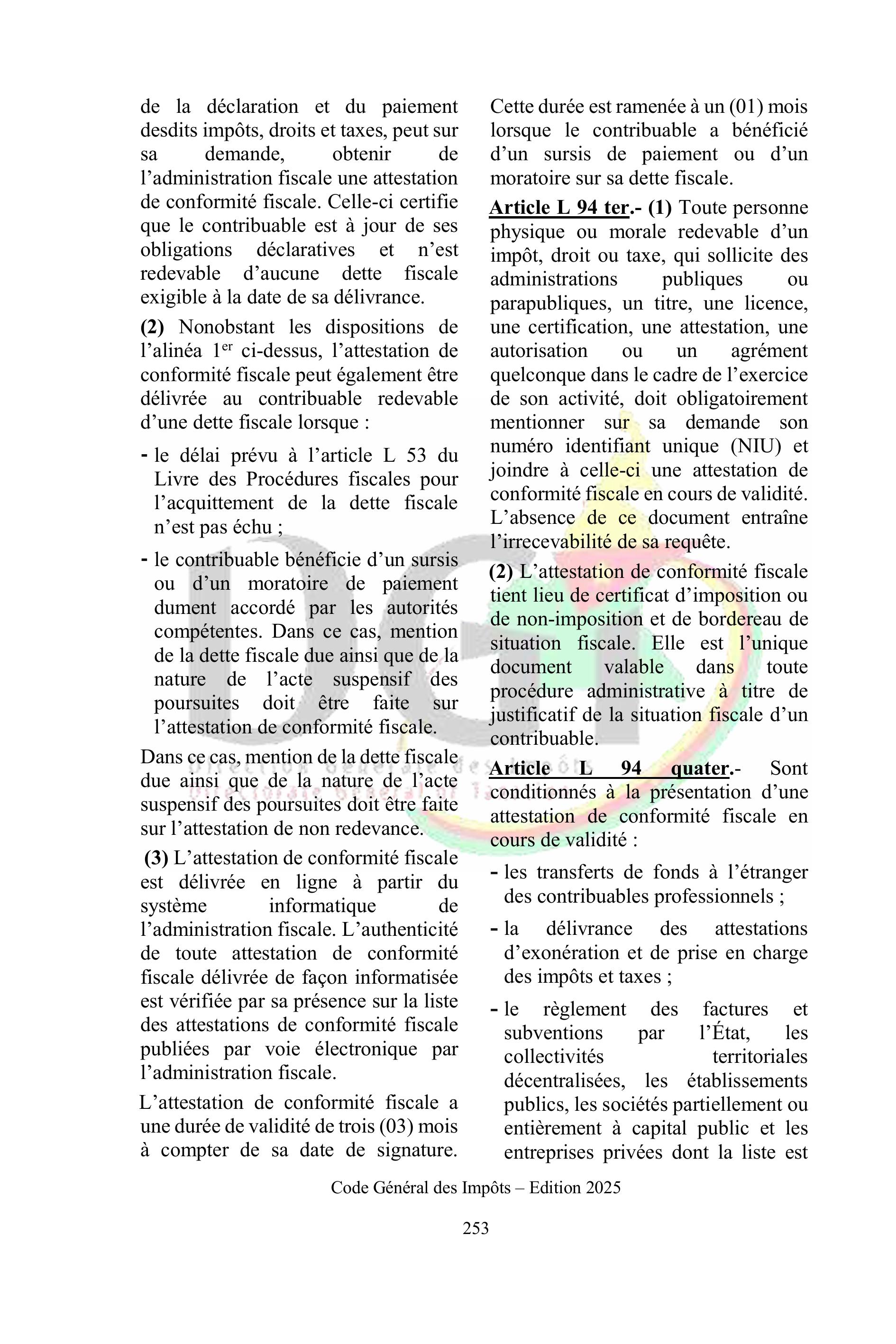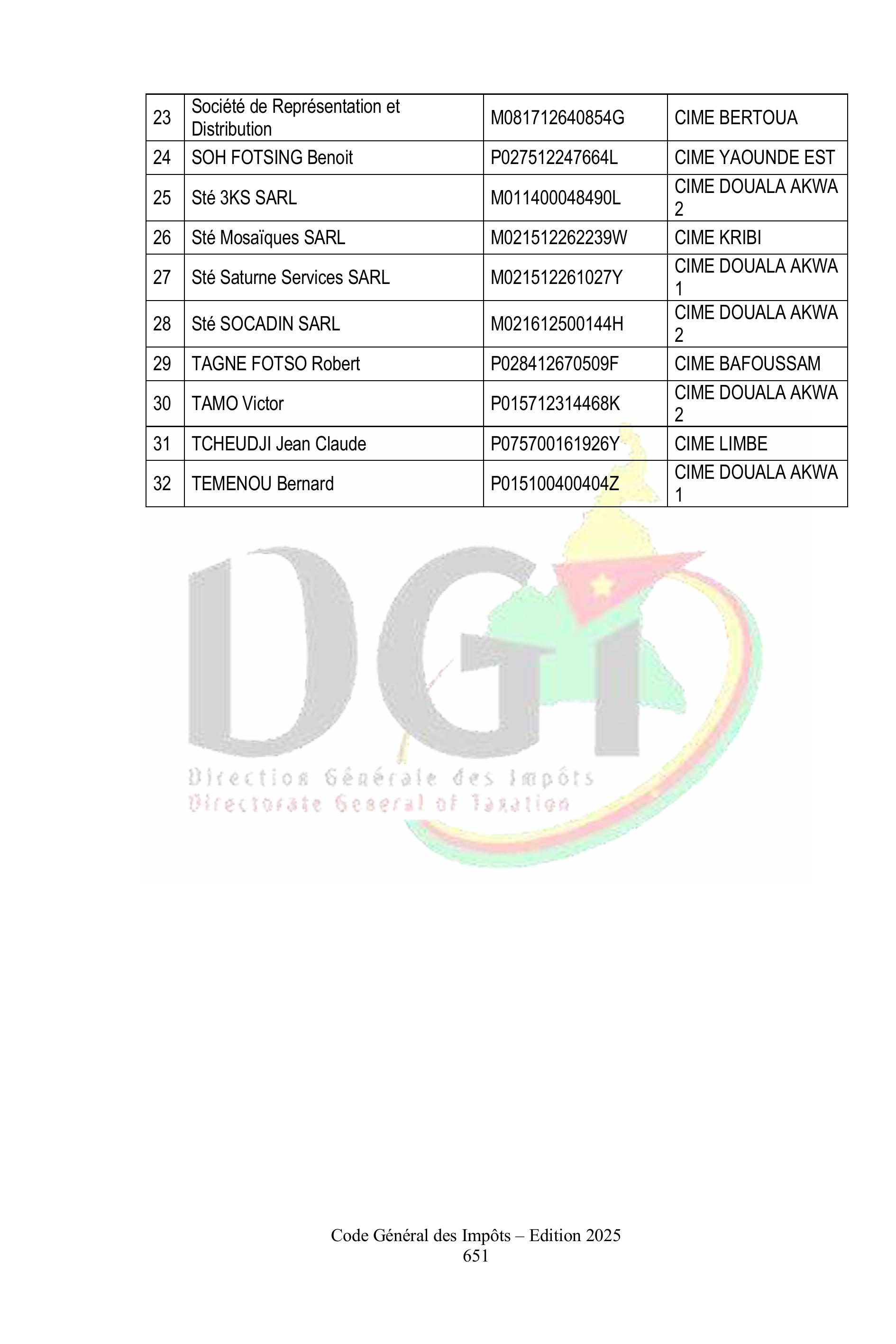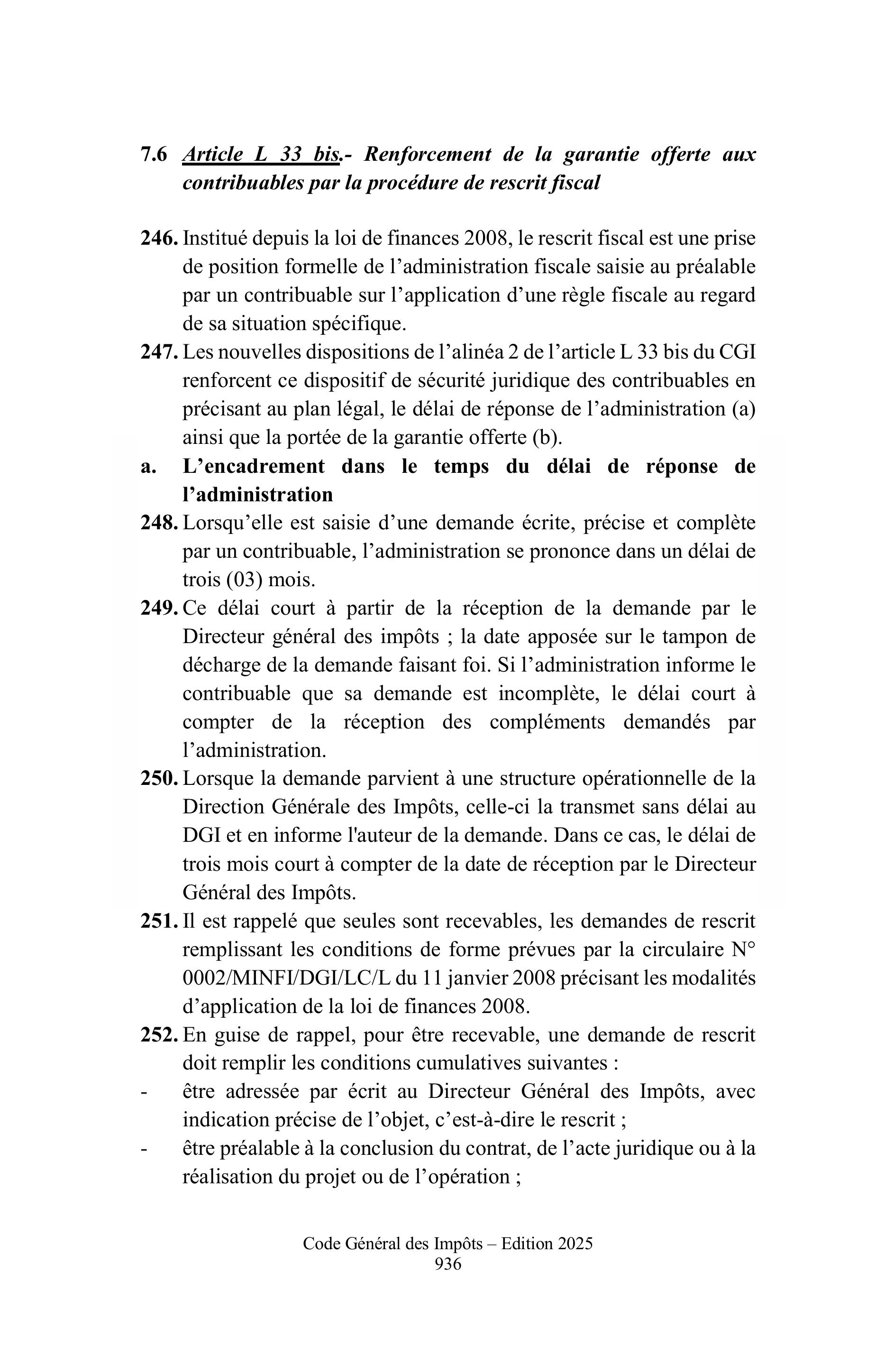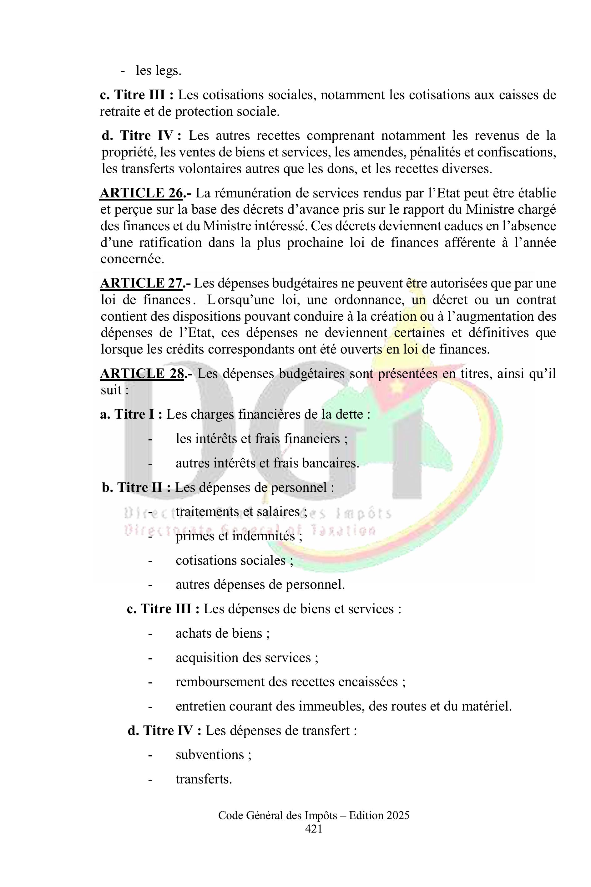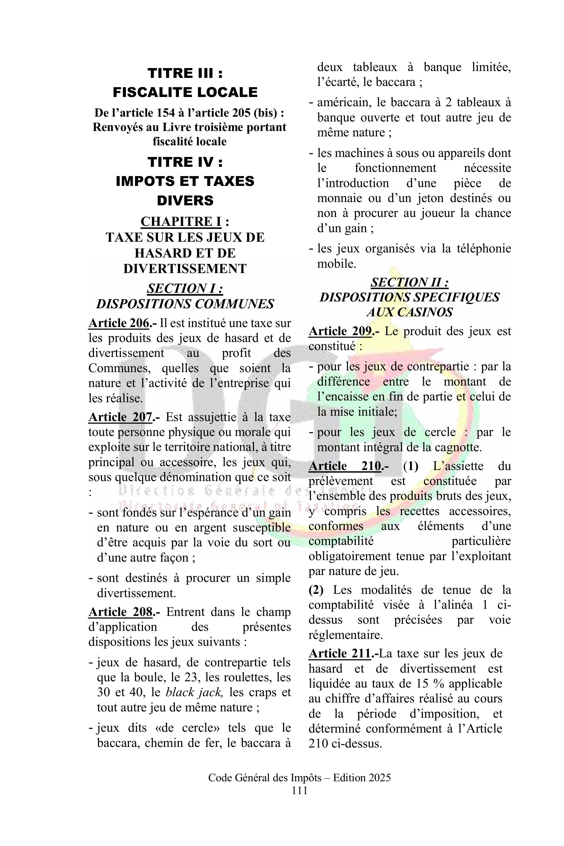 CODE GENERAL DES IMPOTS Mis à jour au 1er janvier 2025