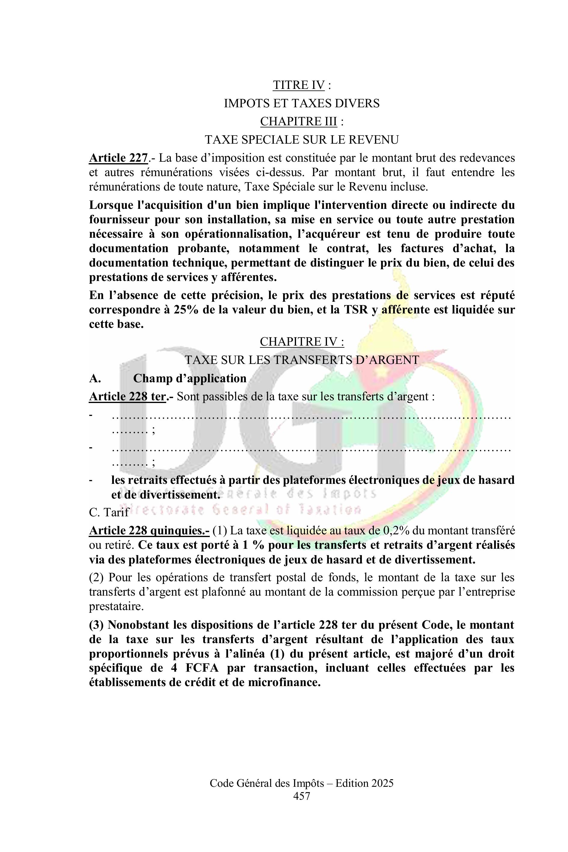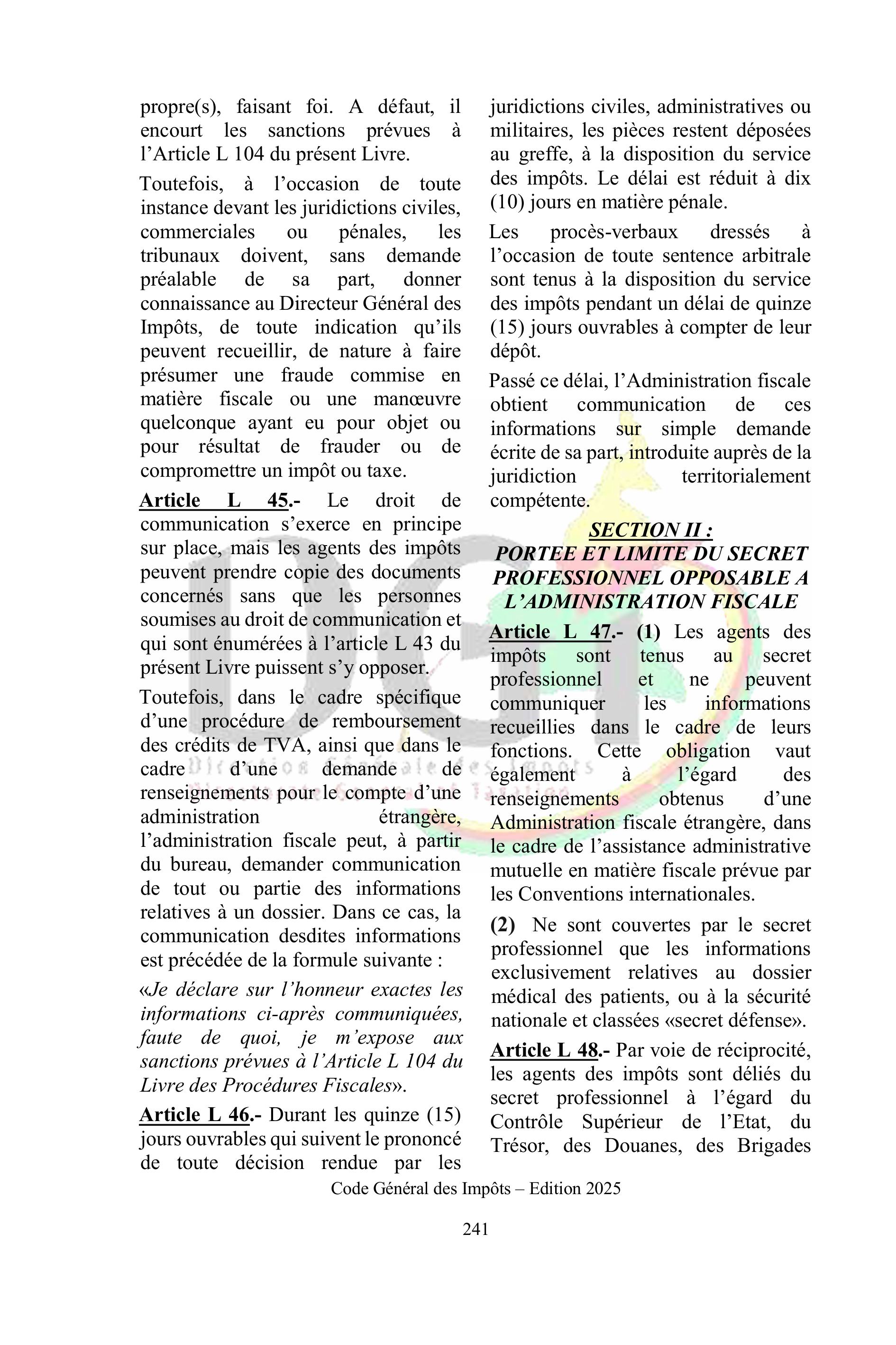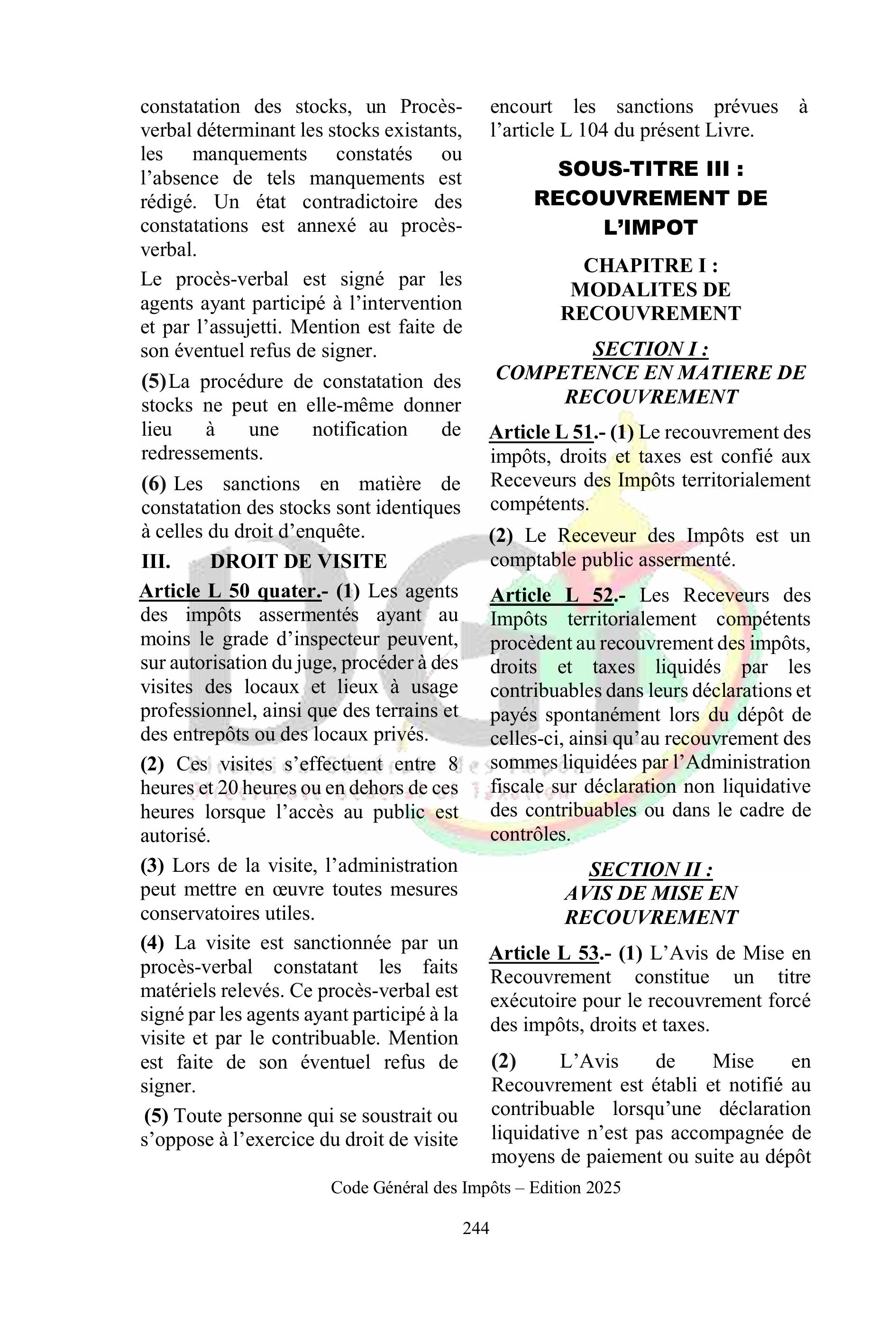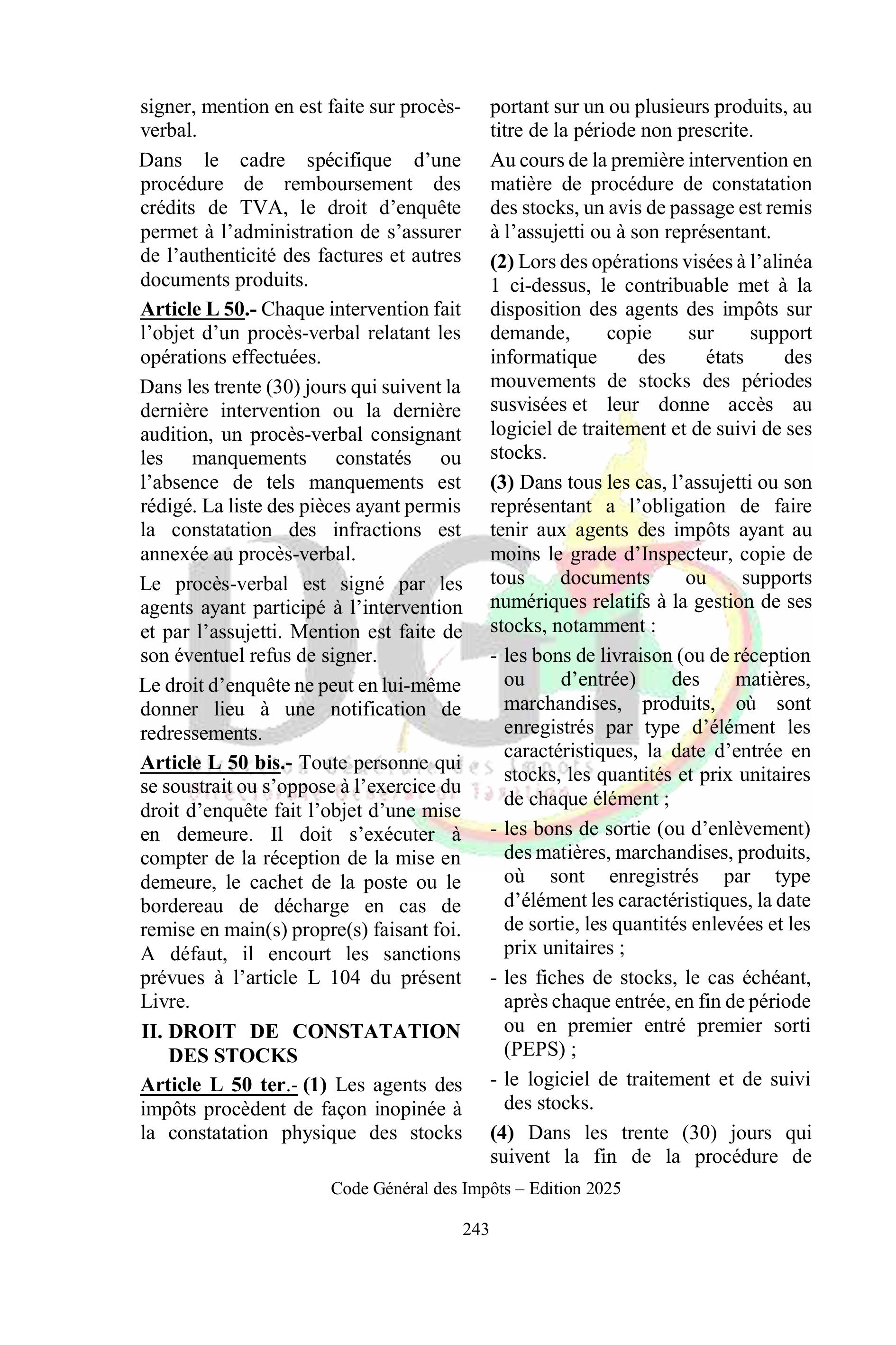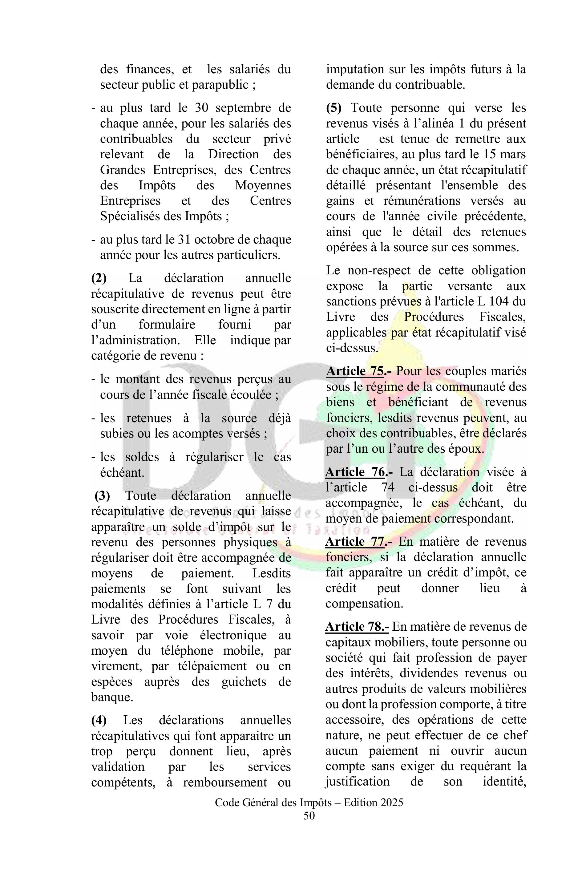 CODE GENERAL DES IMPOTS Mis à jour au 1er janvier 2025