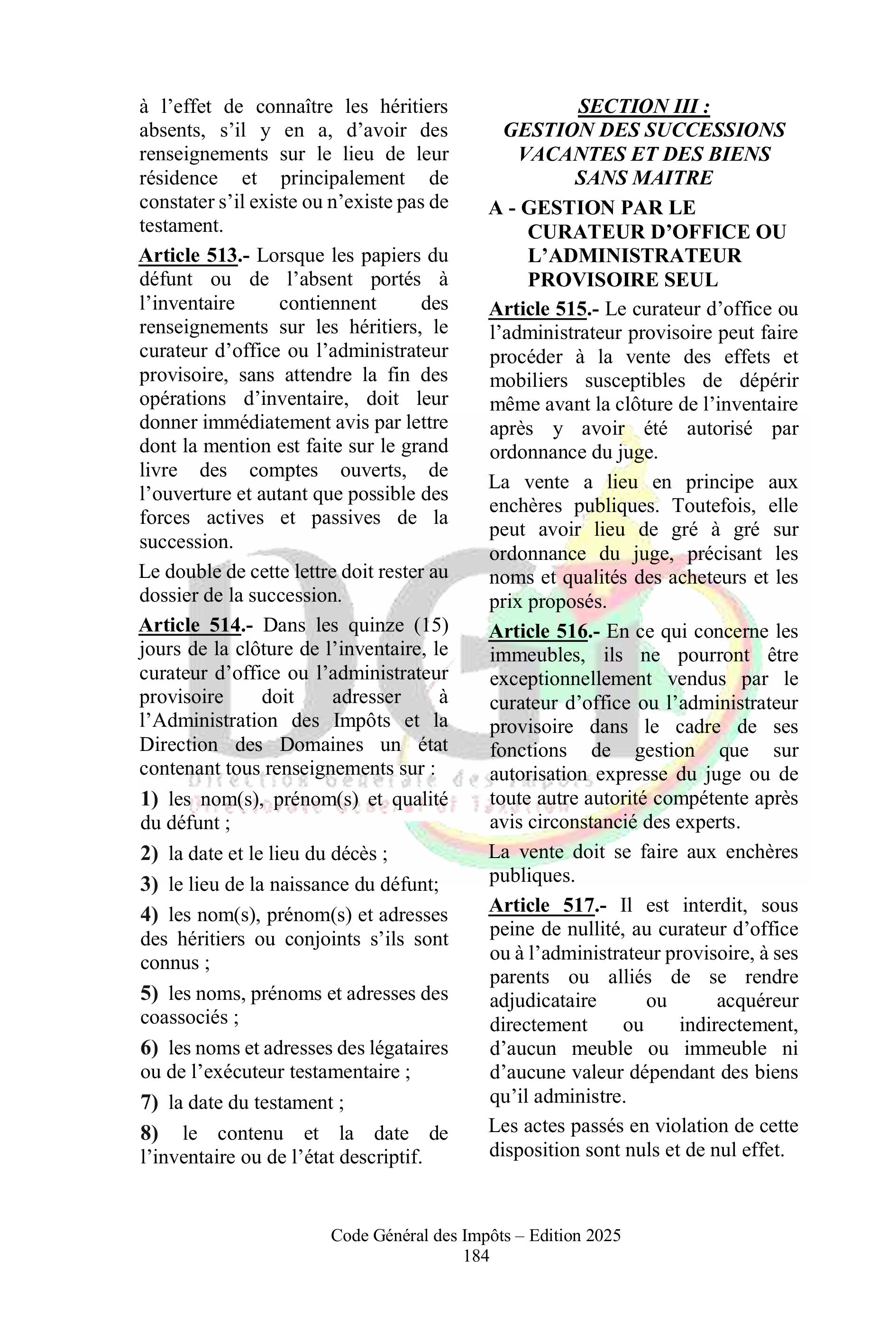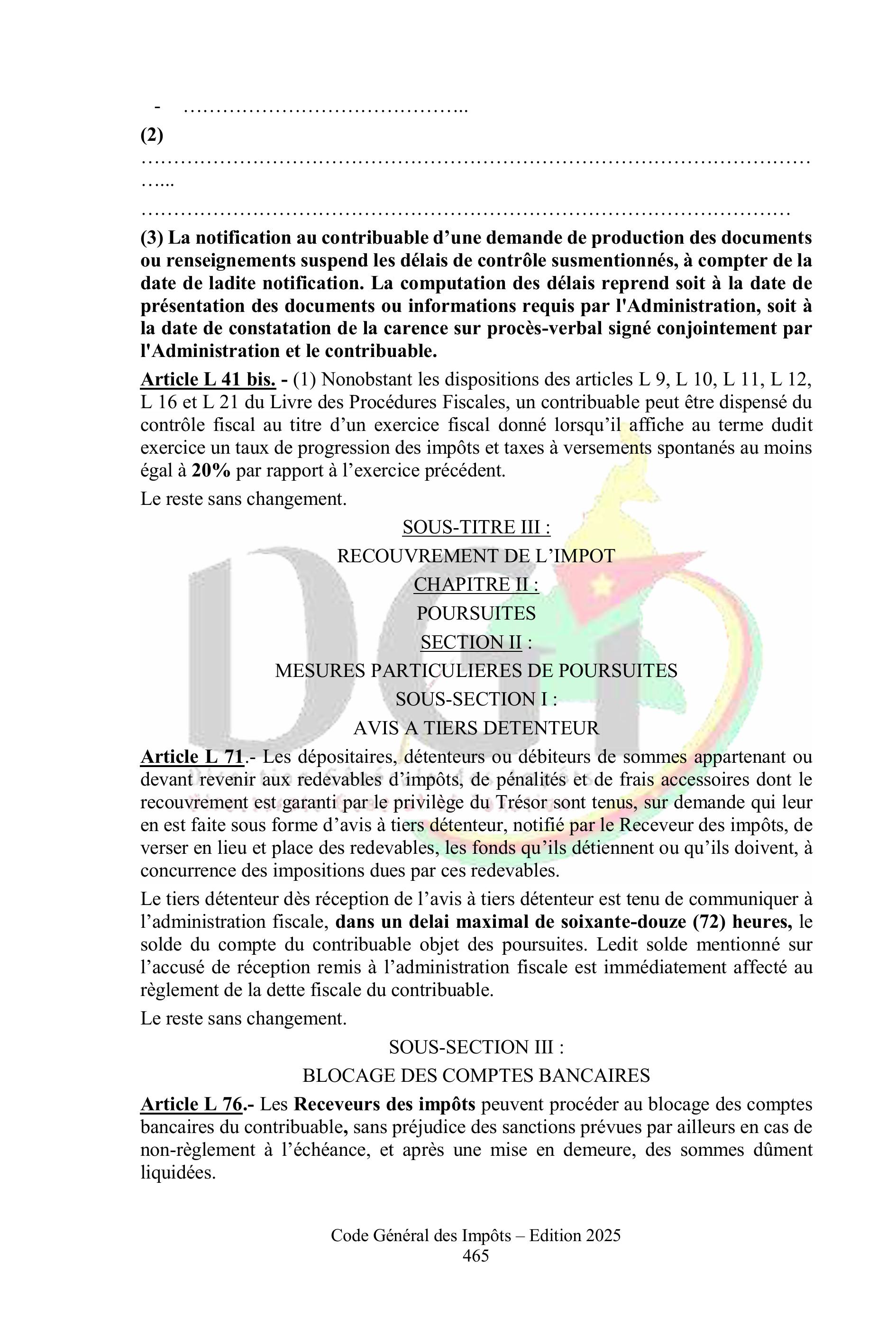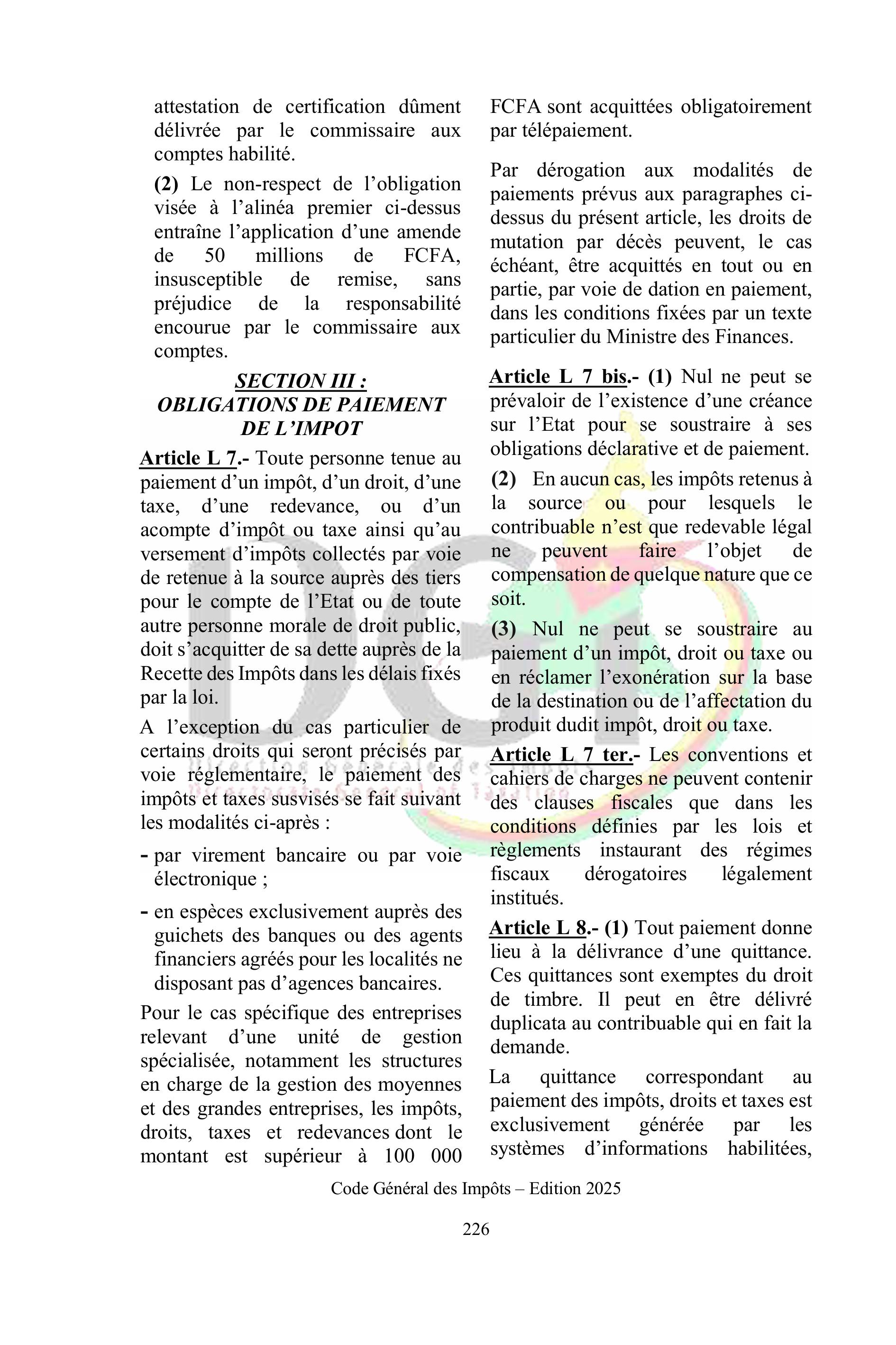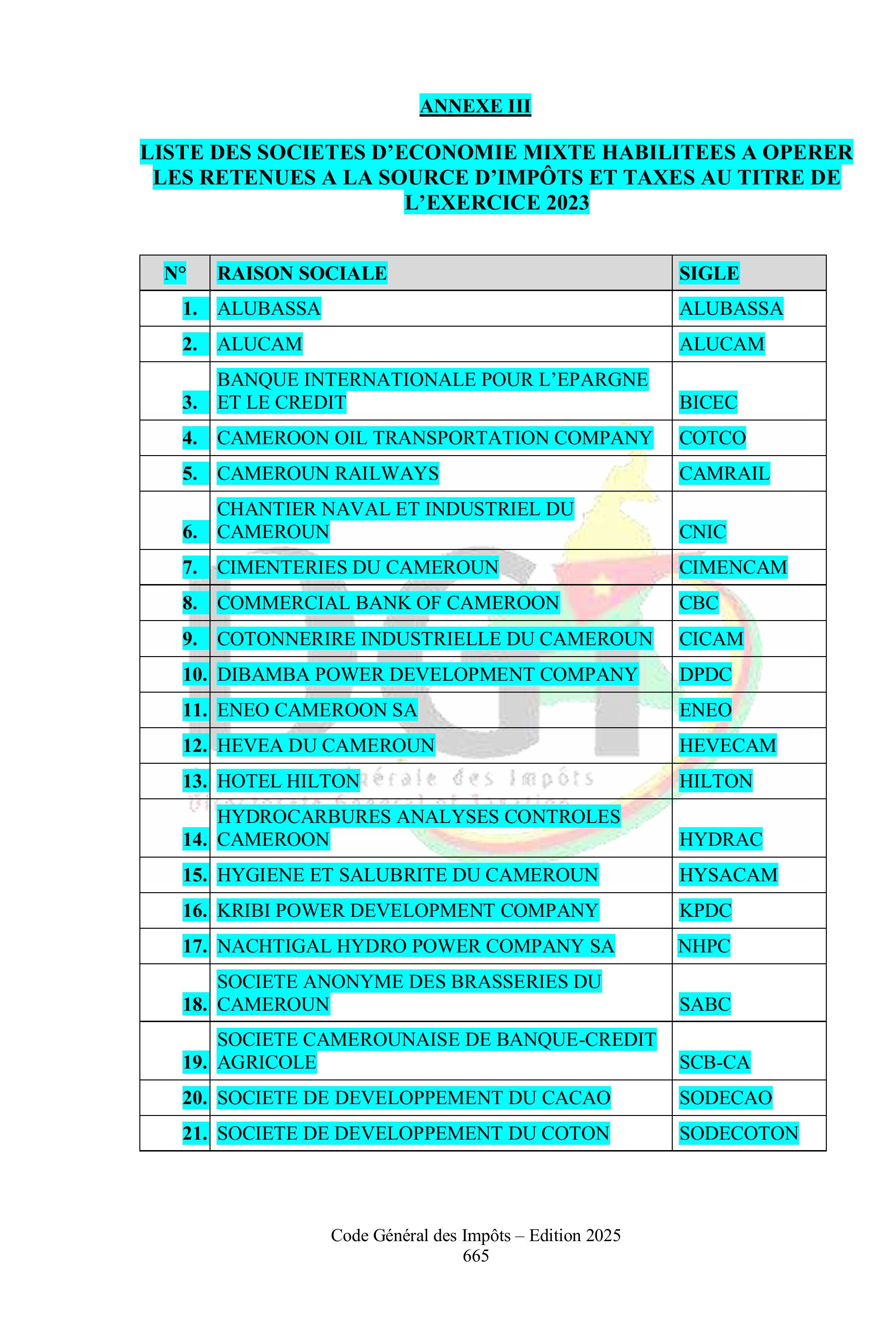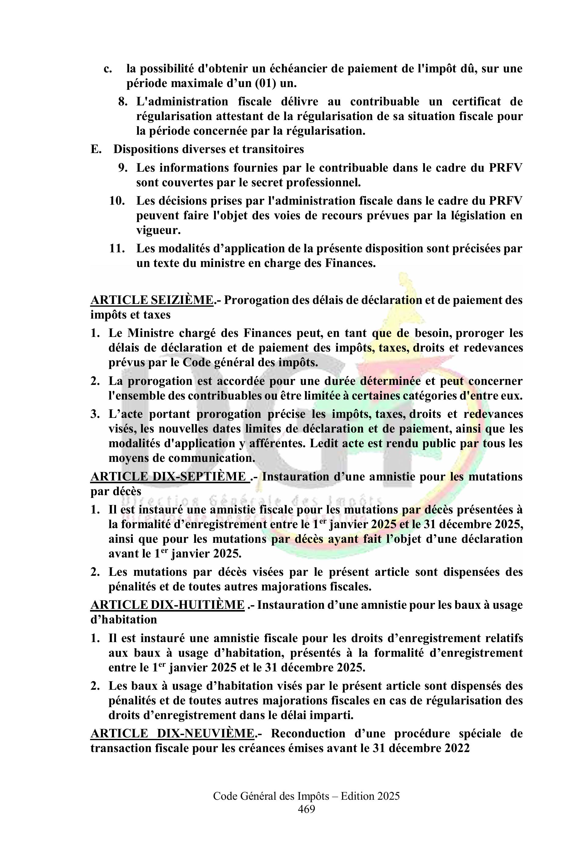 CODE GENERAL DES IMPOTS Mis à jour au 1er janvier 2025