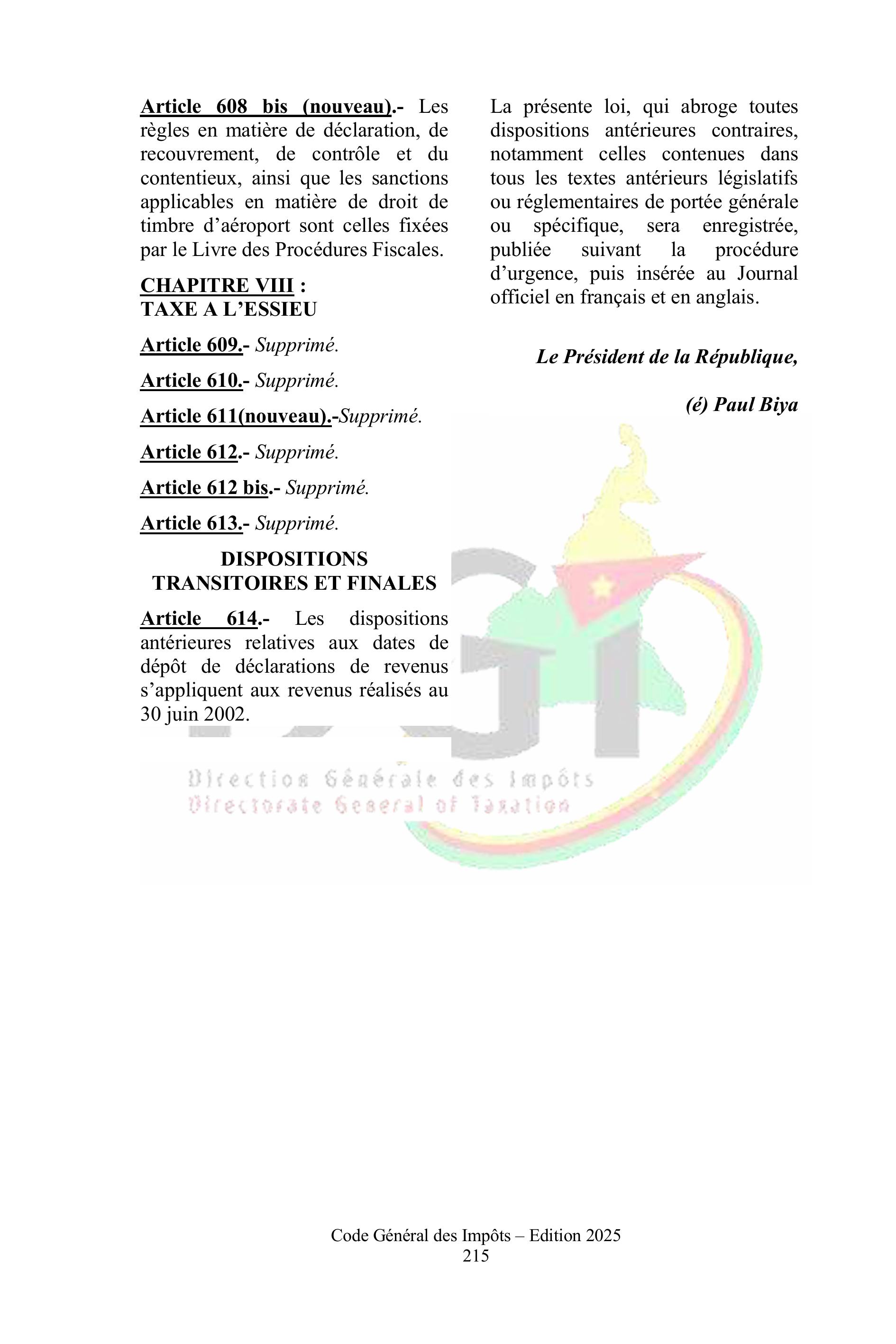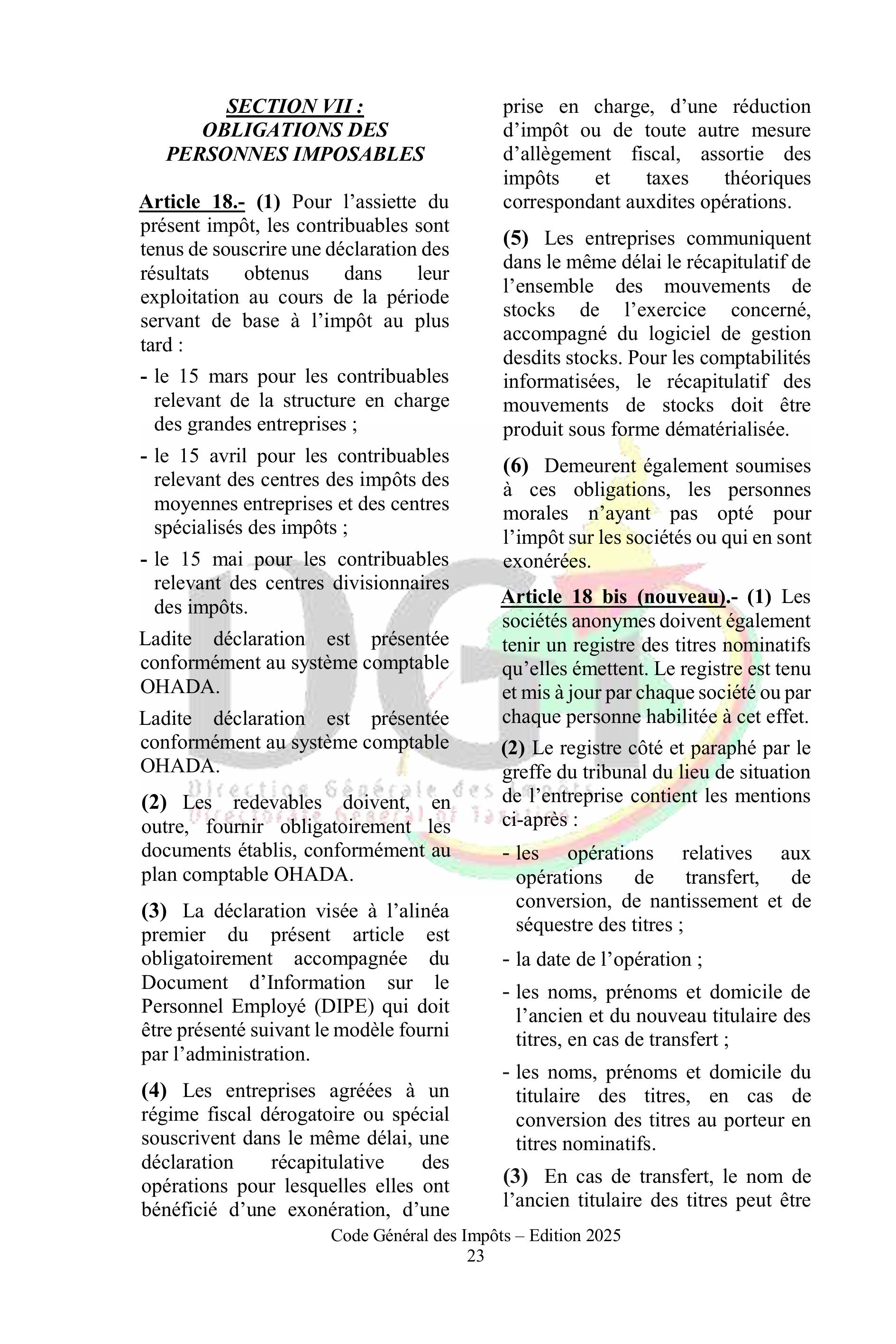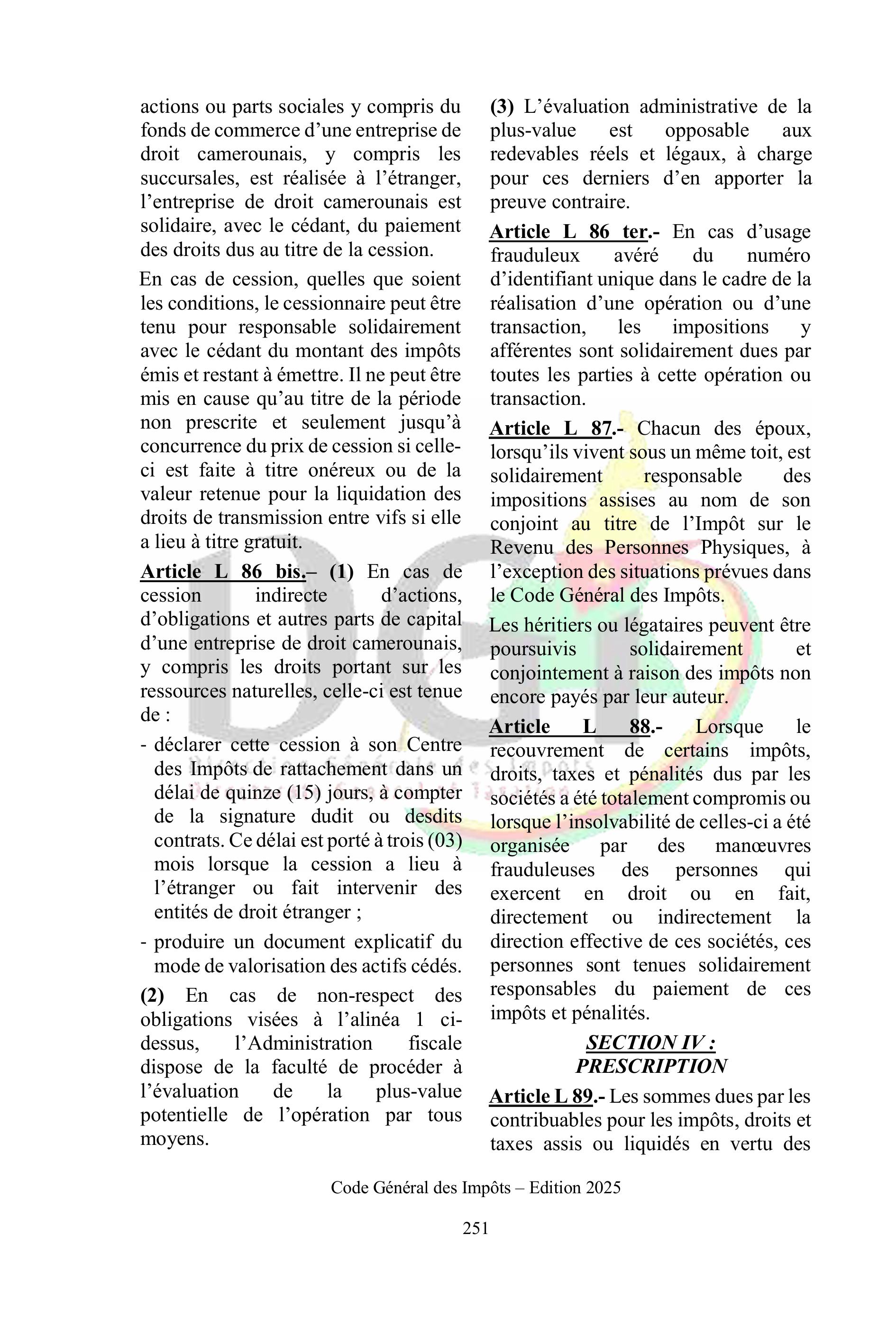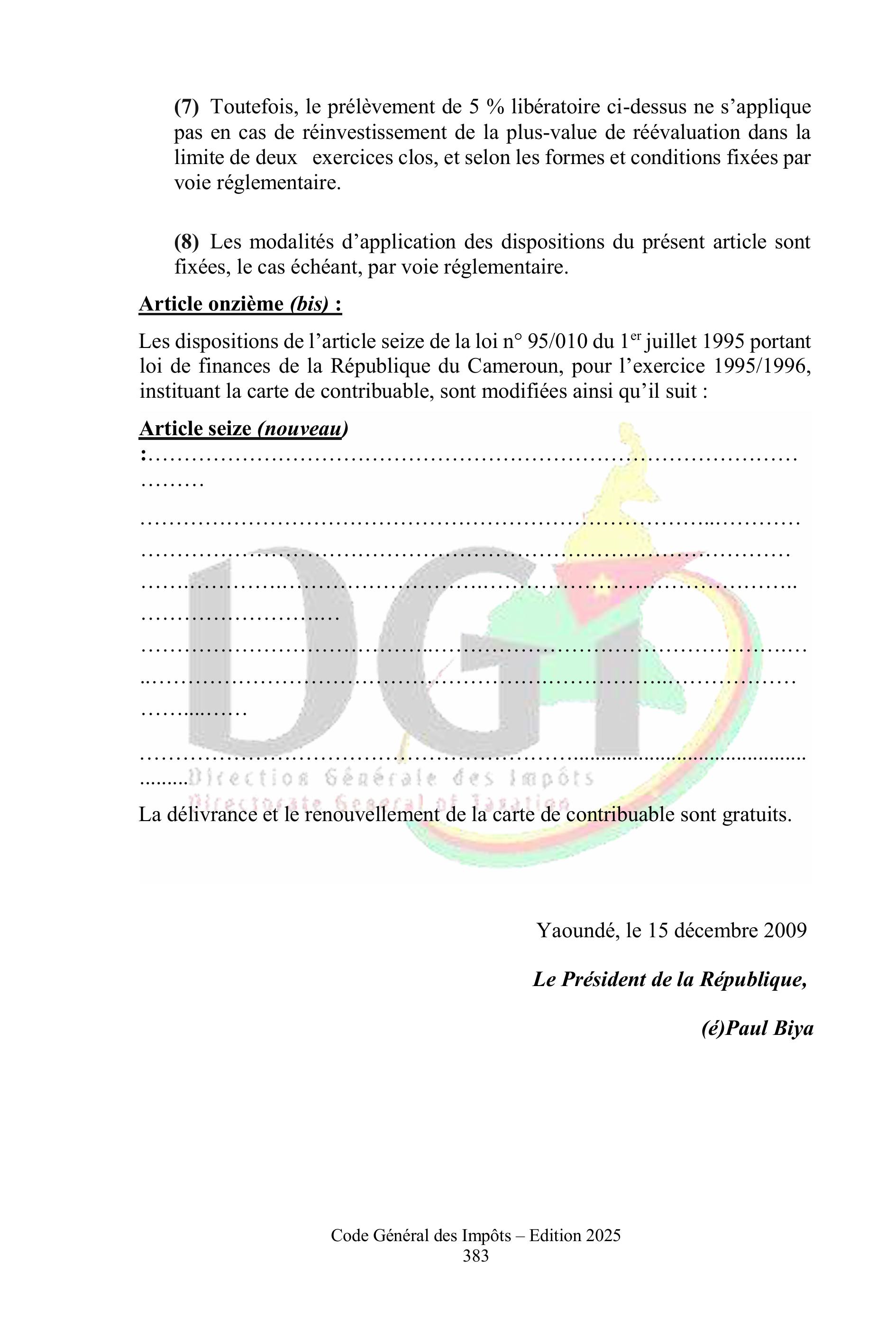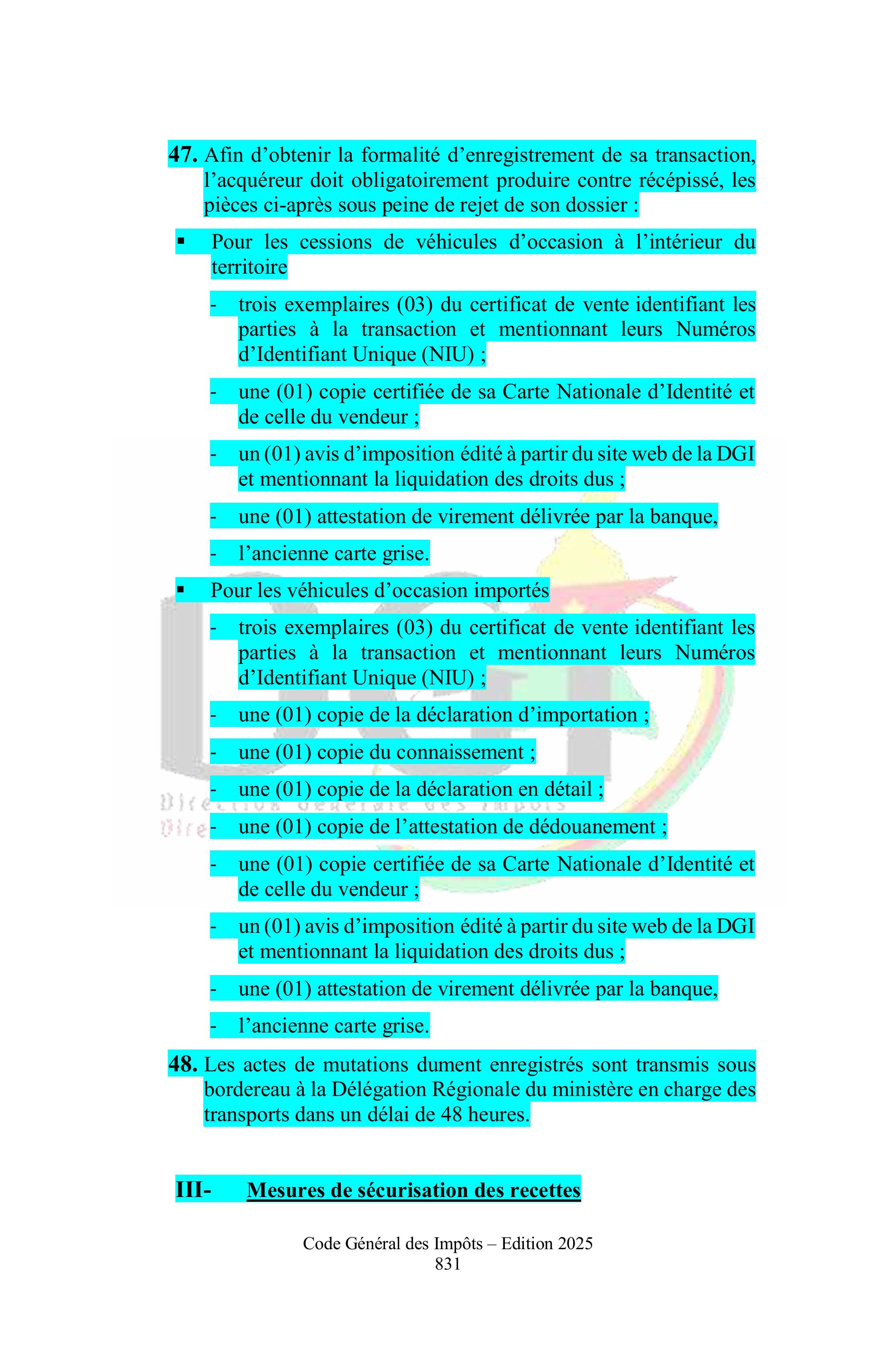 CODE GENERAL DES IMPOTS Mis à jour au 1er janvier 2025