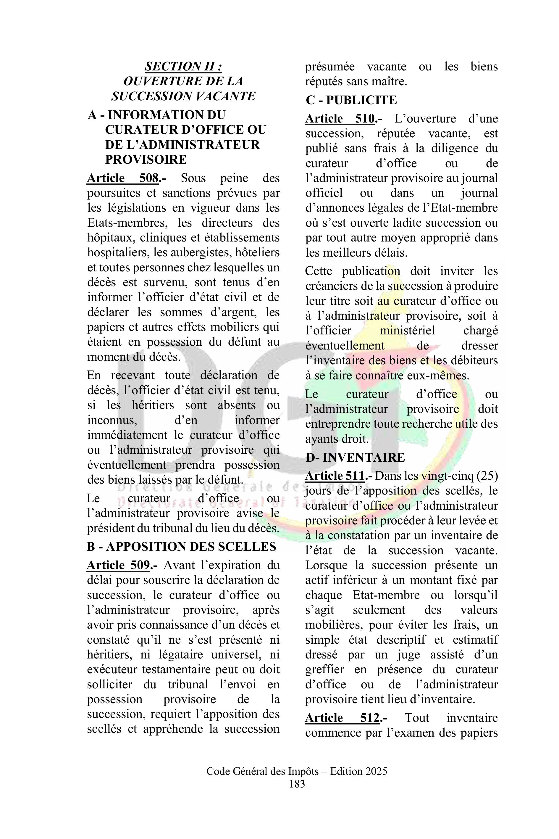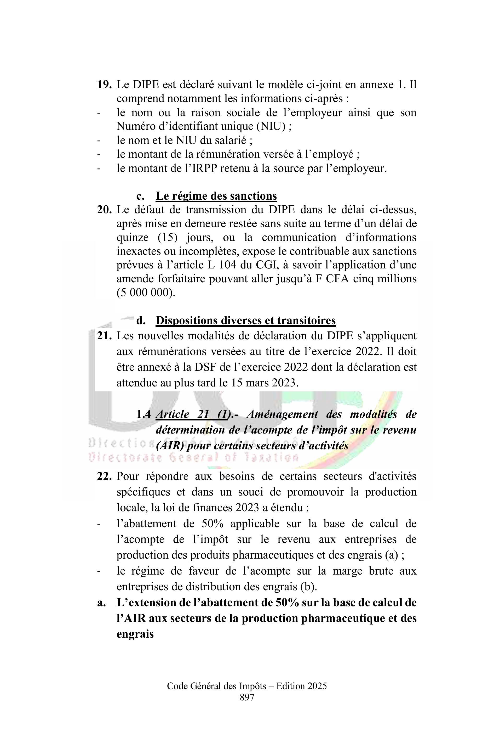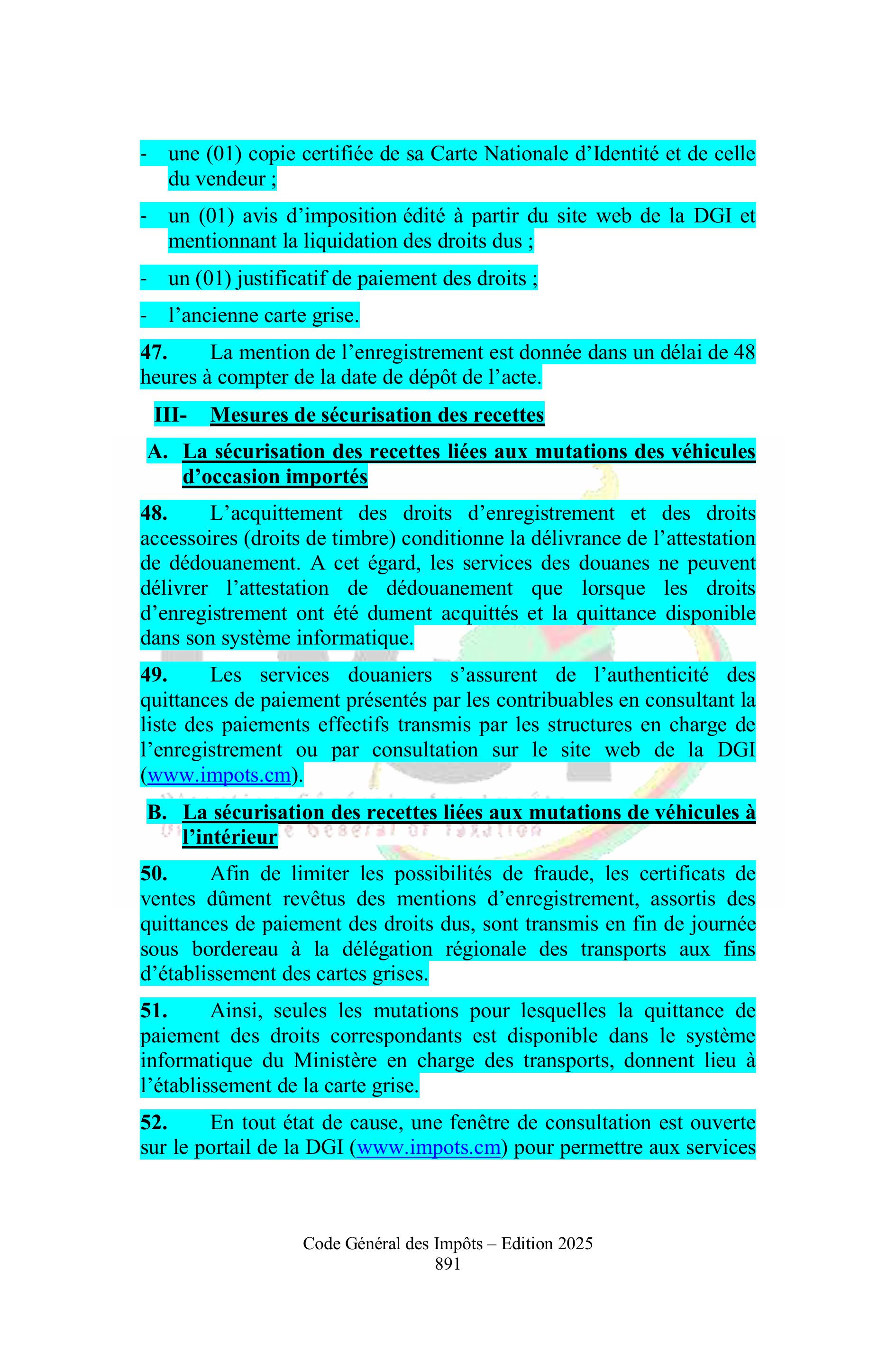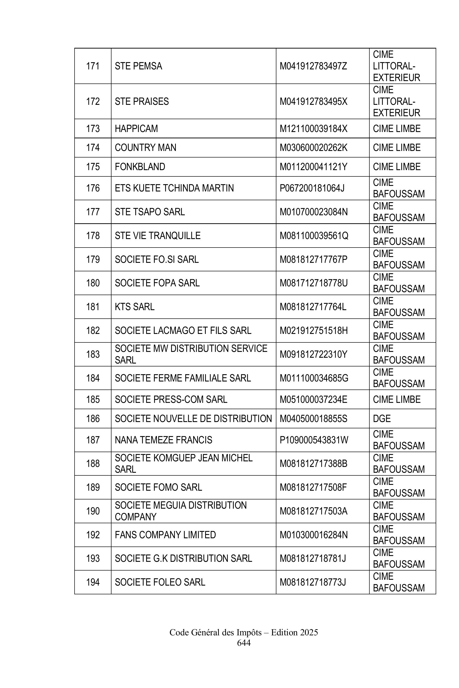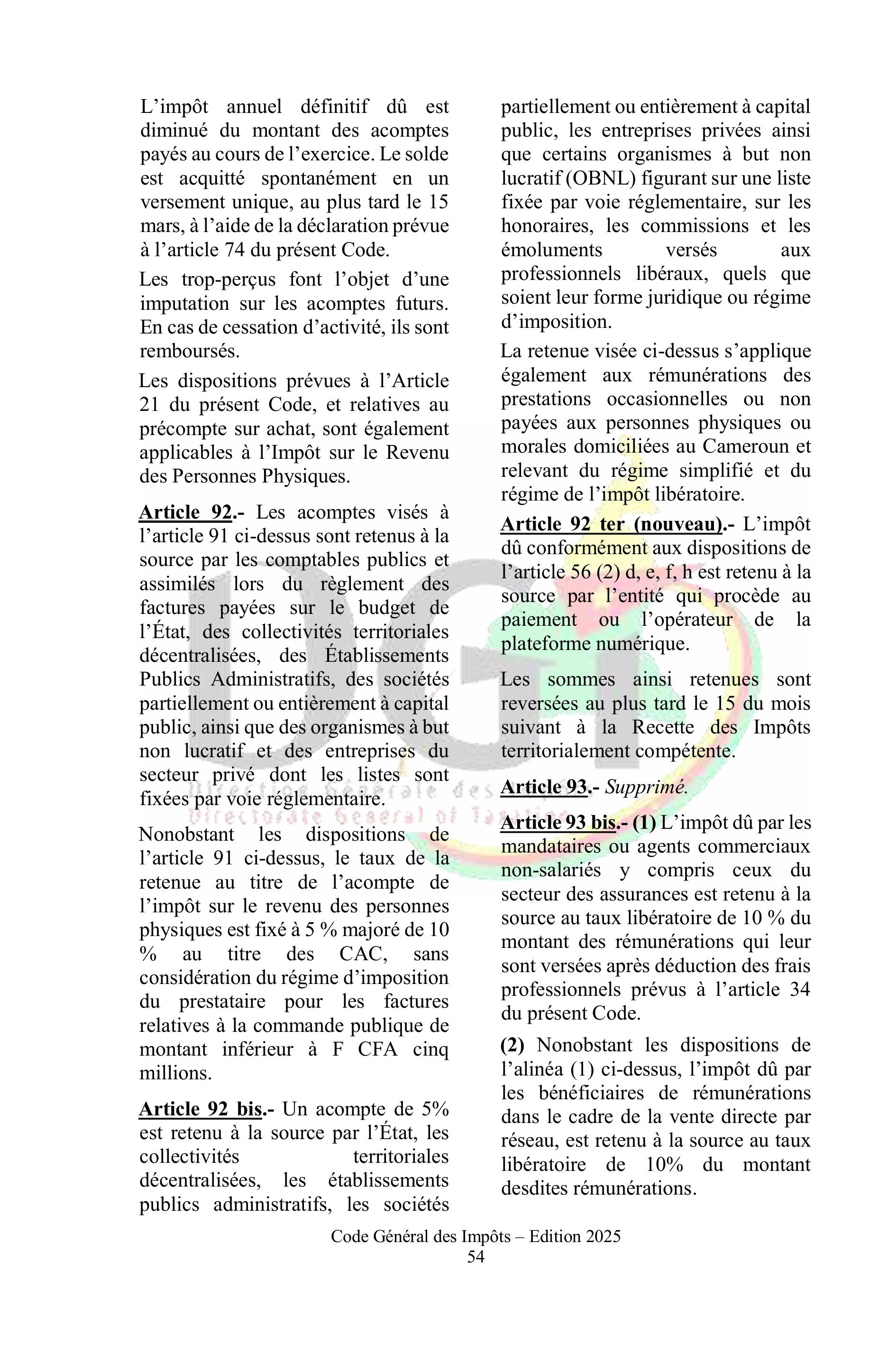 CODE GENERAL DES IMPOTS Mis à jour au 1er janvier 2025