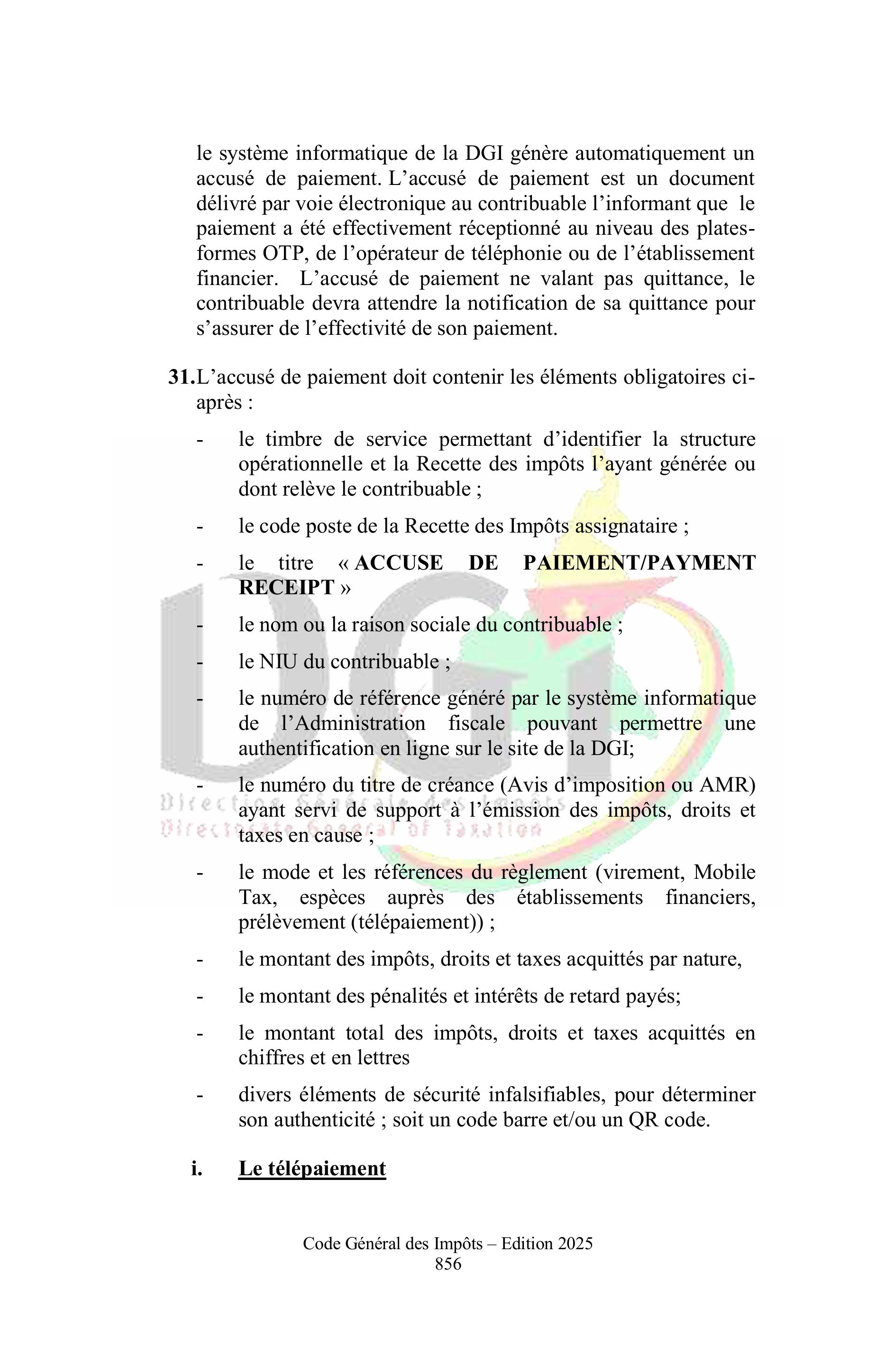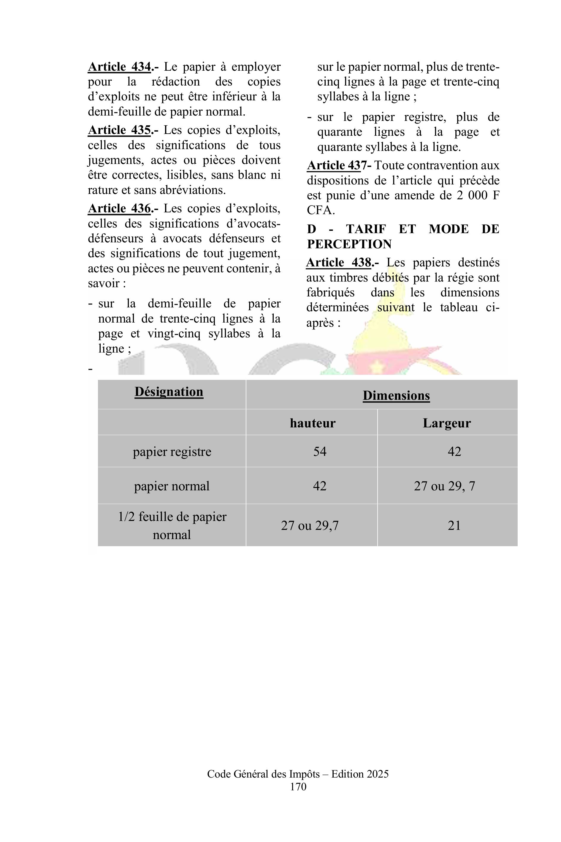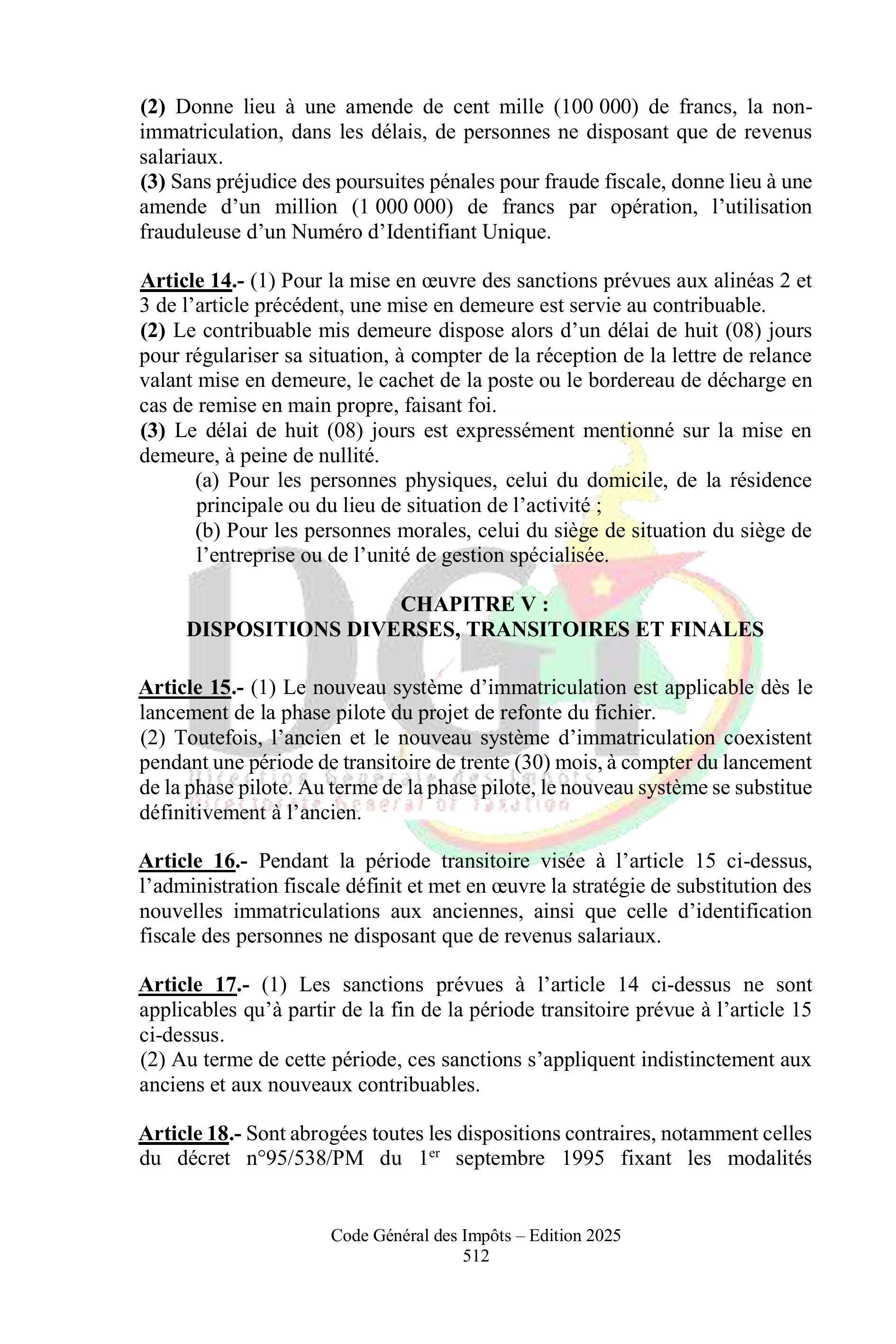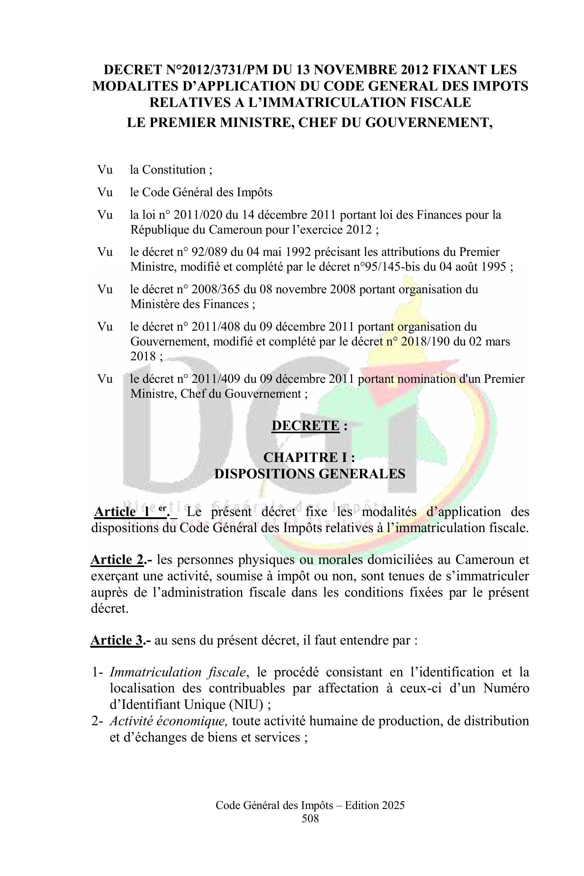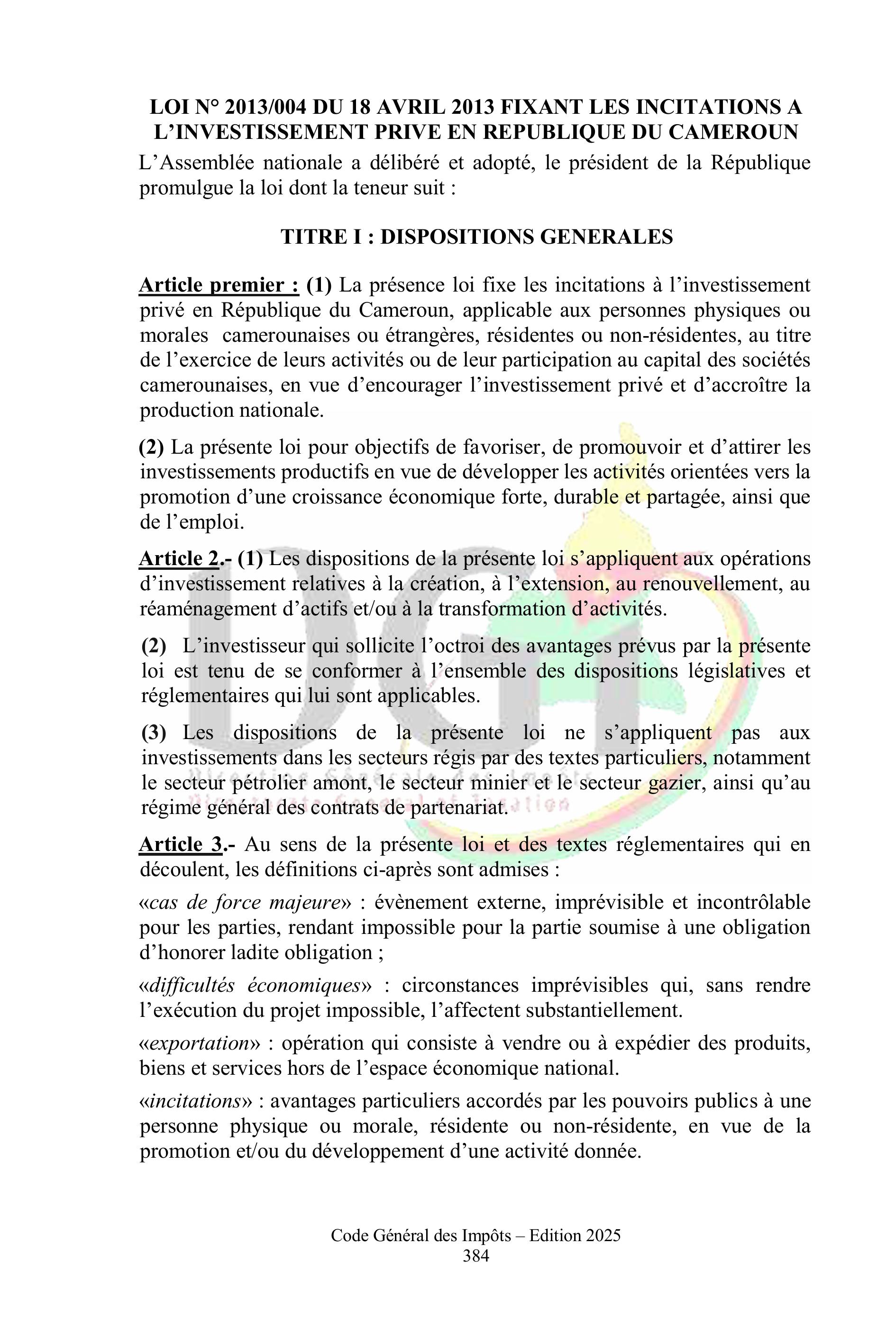 CODE GENERAL DES IMPOTS Mis à jour au 1er janvier 2025