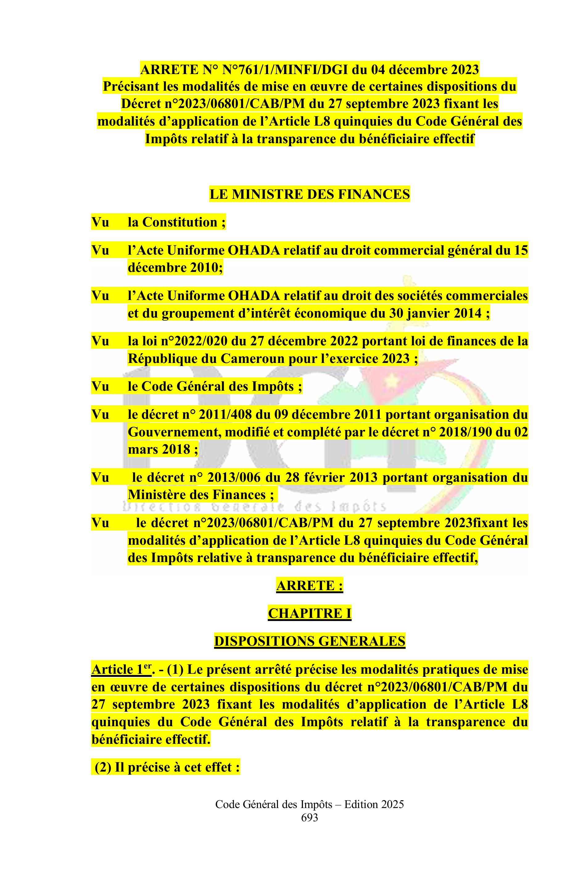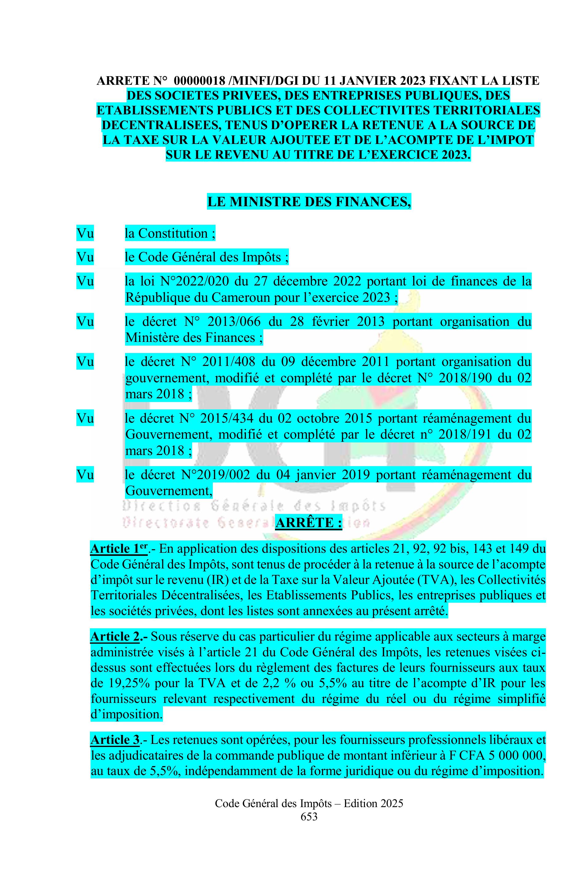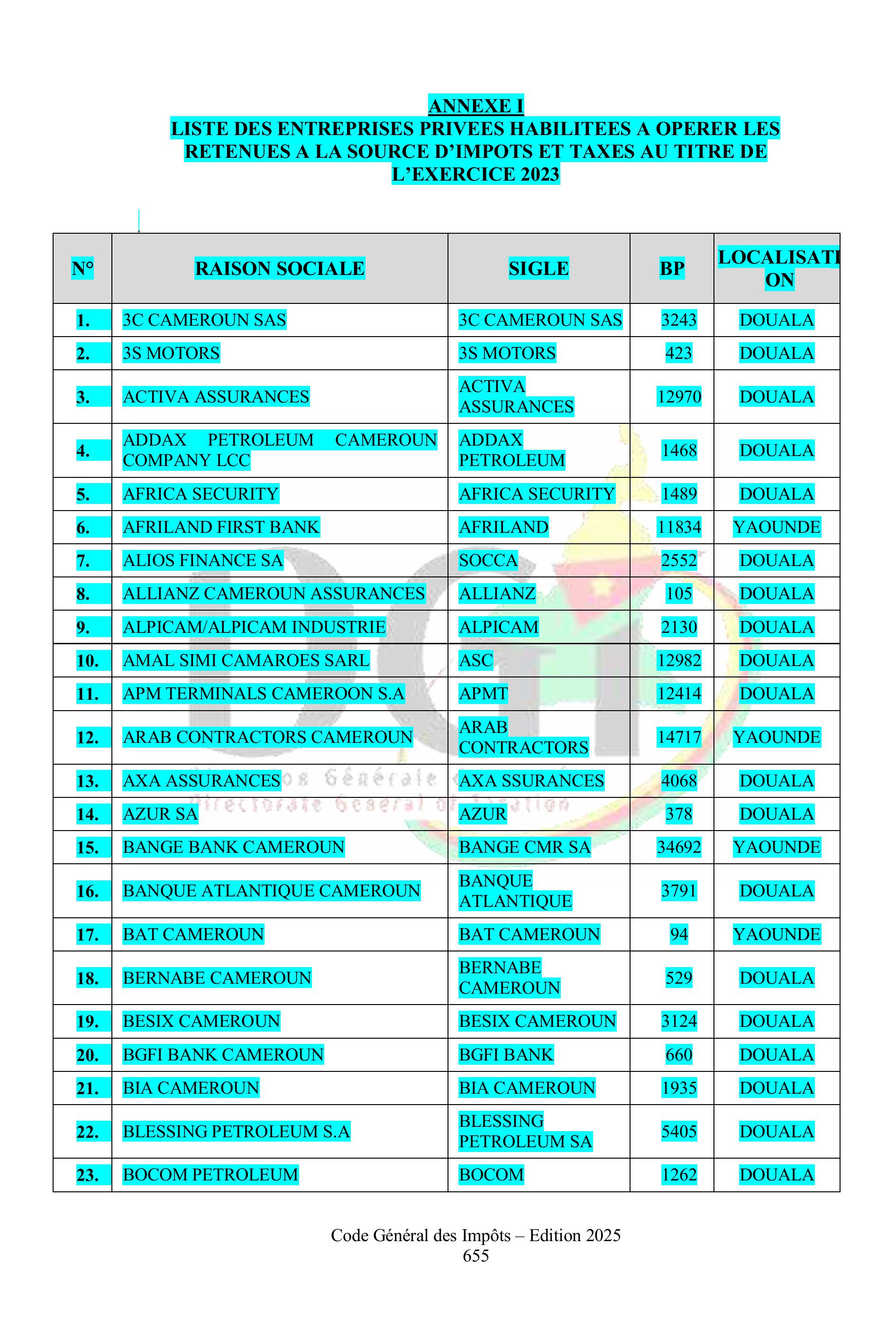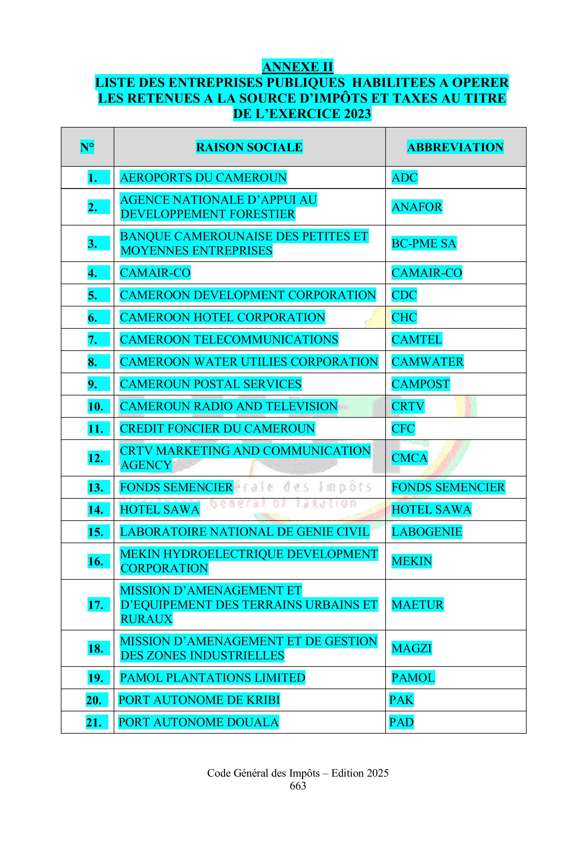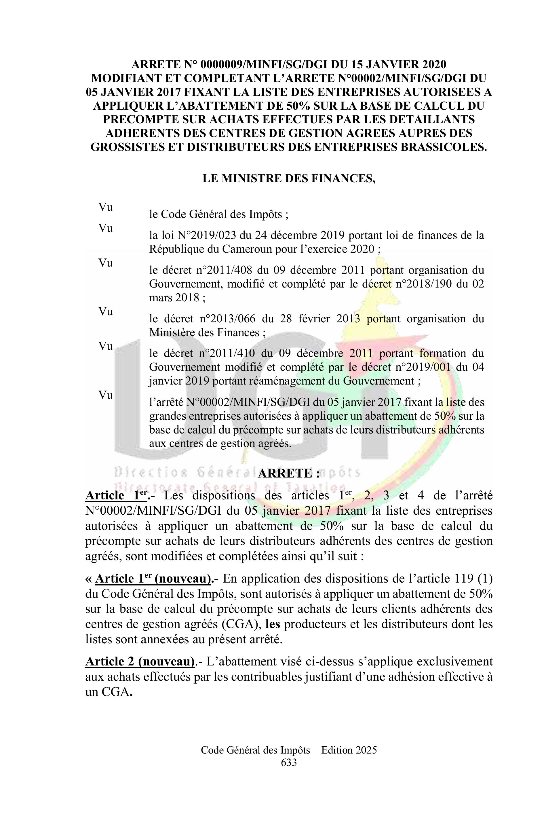 CODE GENERAL DES IMPOTS Mis à jour au 1er janvier 2025