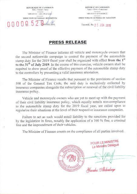 Important Communiqué du Ministre des Finances