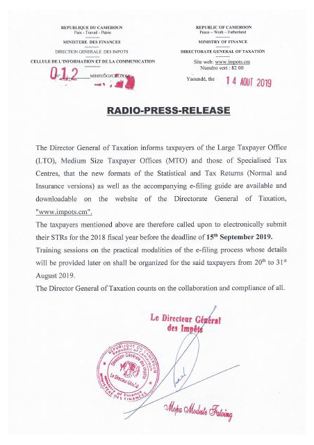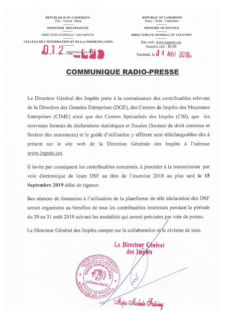 COMMUNIQUE CAMPAGNE IRPP 2025
